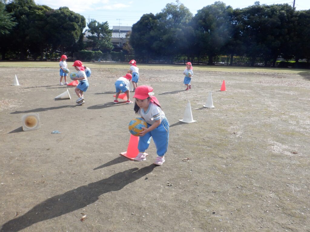 倒したのを戻すゲームやボールでコーンを倒すゲームを行いました🏅
