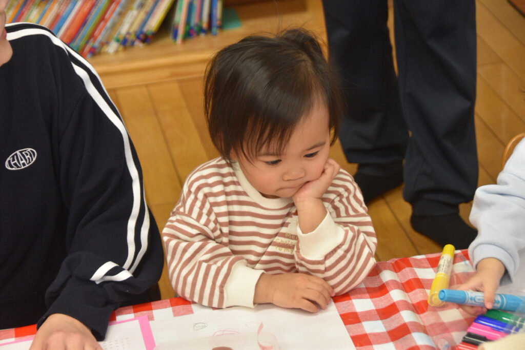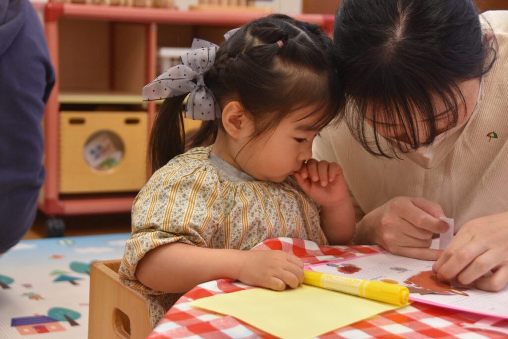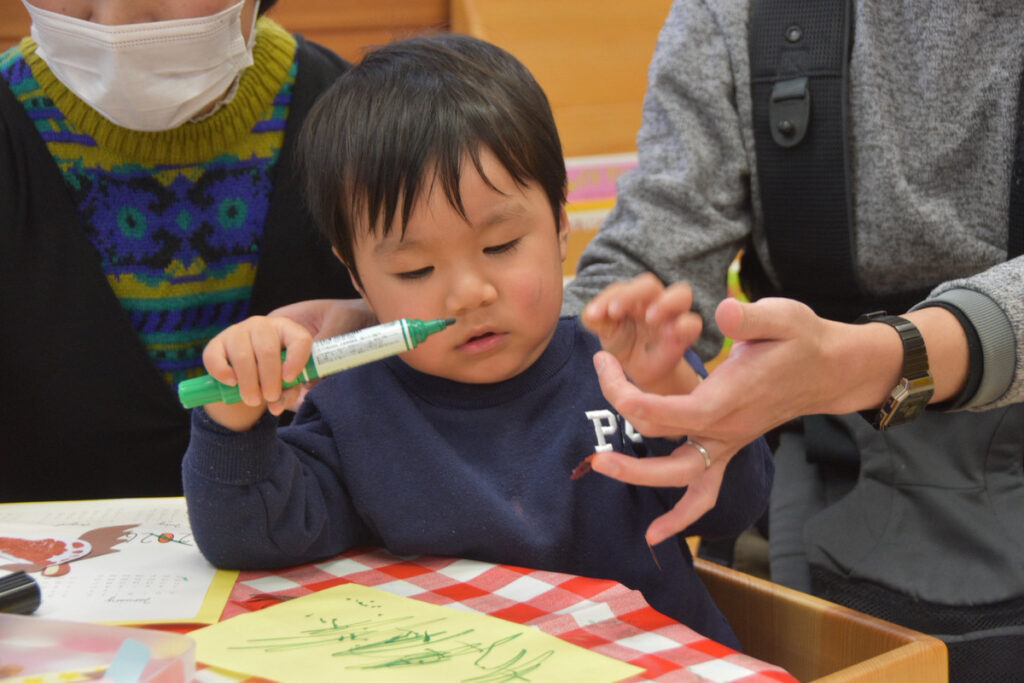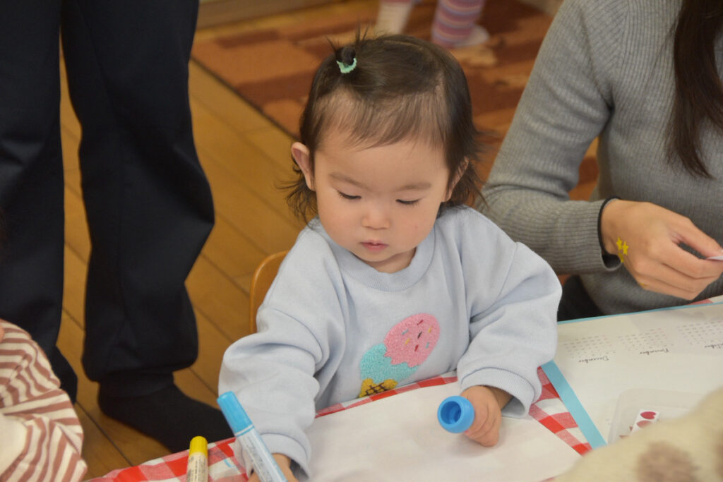 おもちゃで遊んでいたり、シール貼りやお絵かきをしていました(^^)