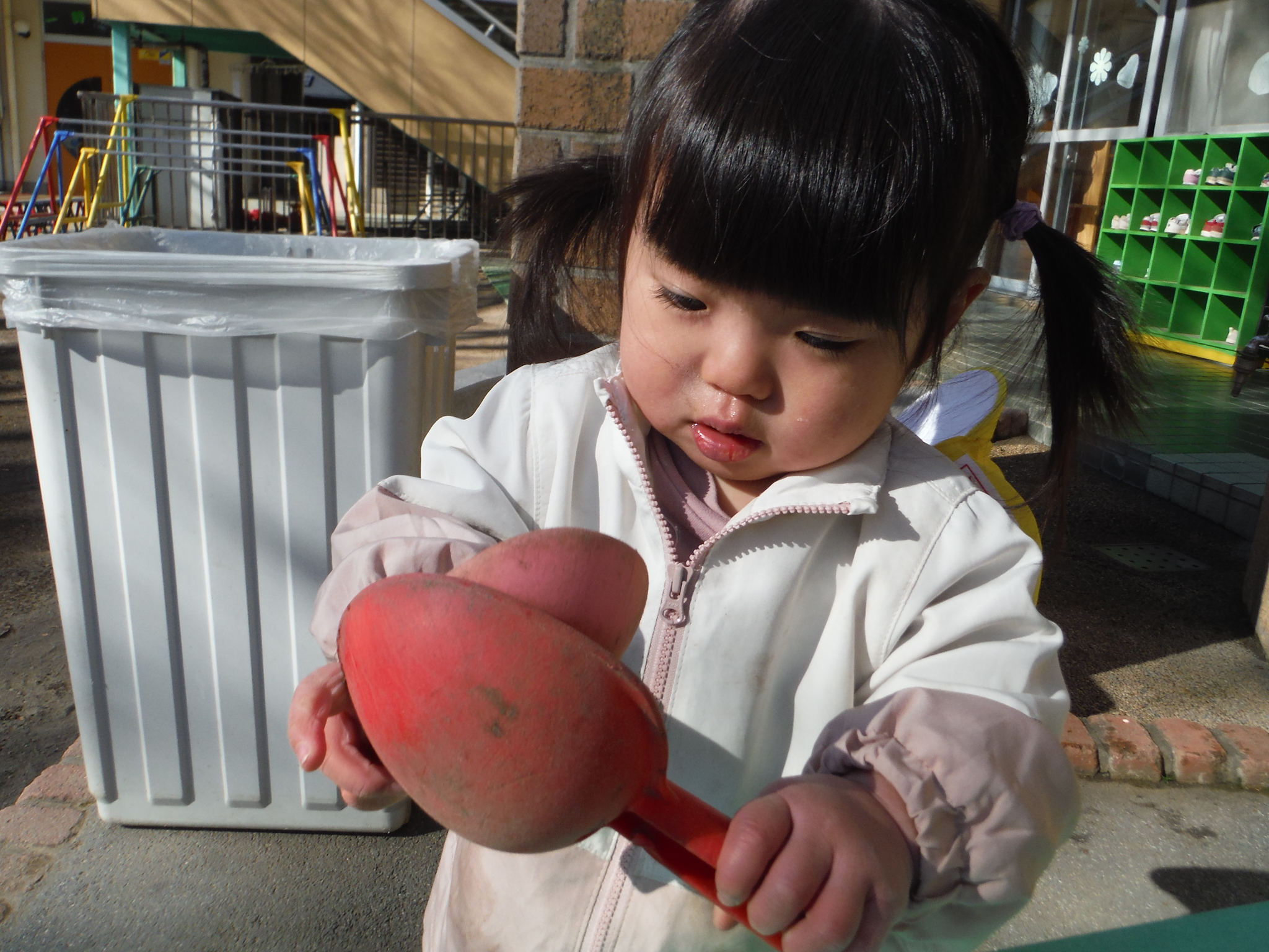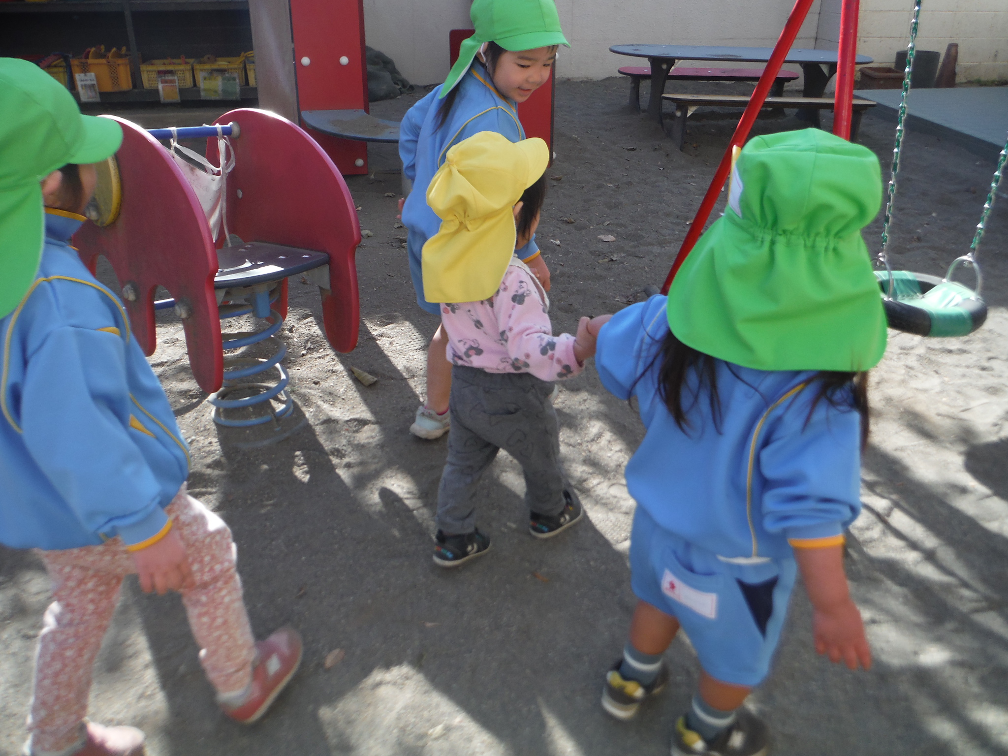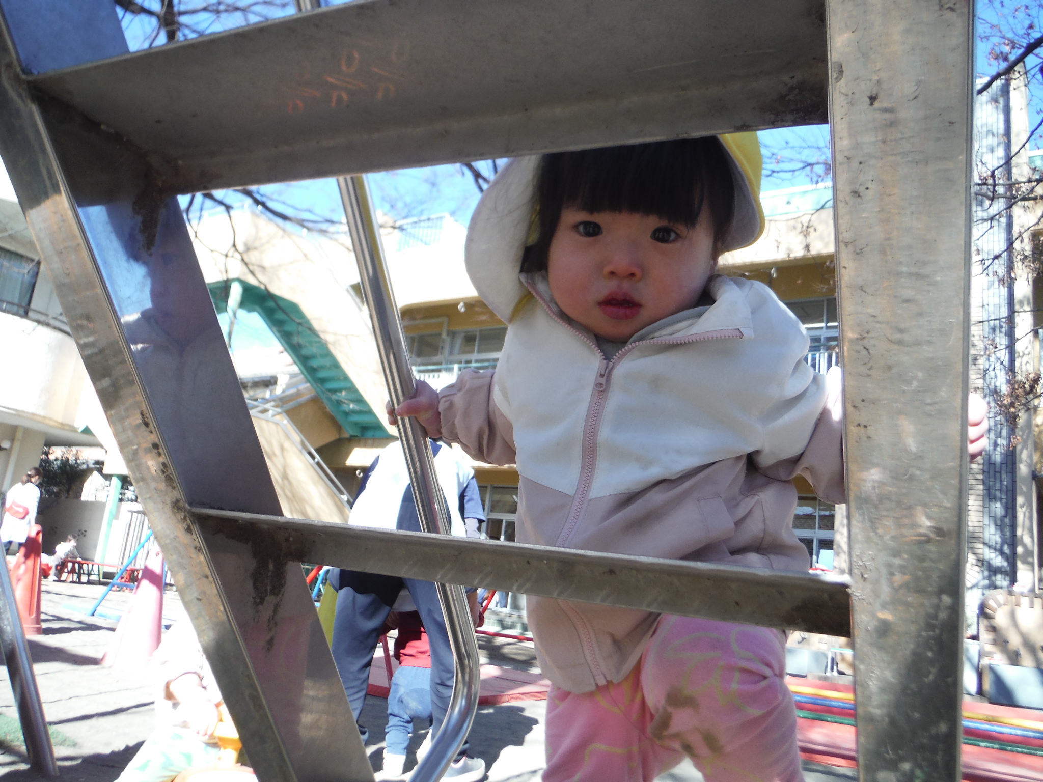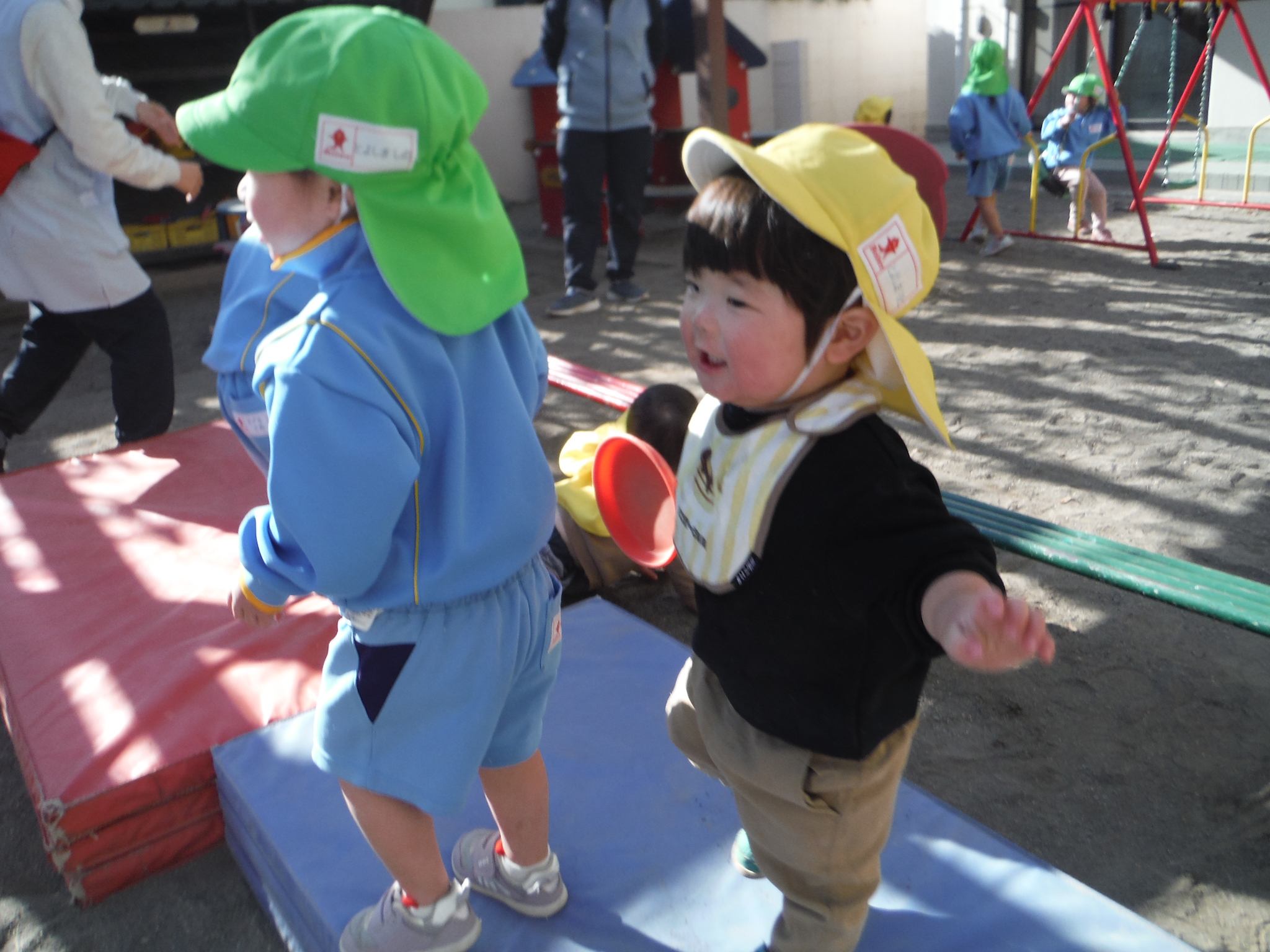 滑り台に挑戦してみたり、大きいクラスのお姉さんたちとごはんごっこを楽しんだり。