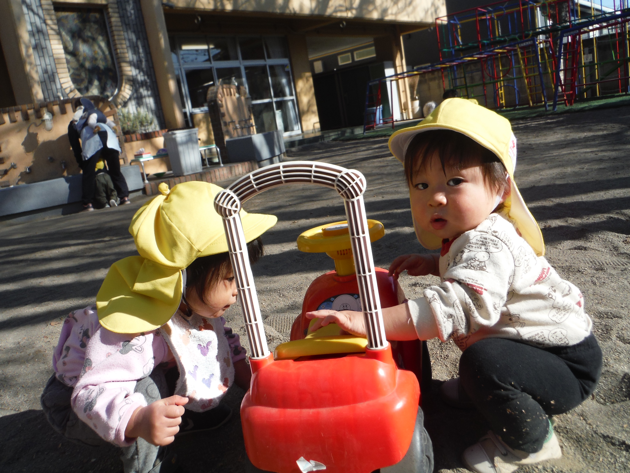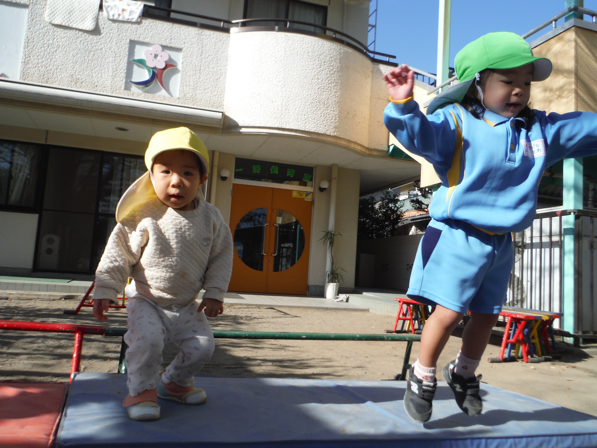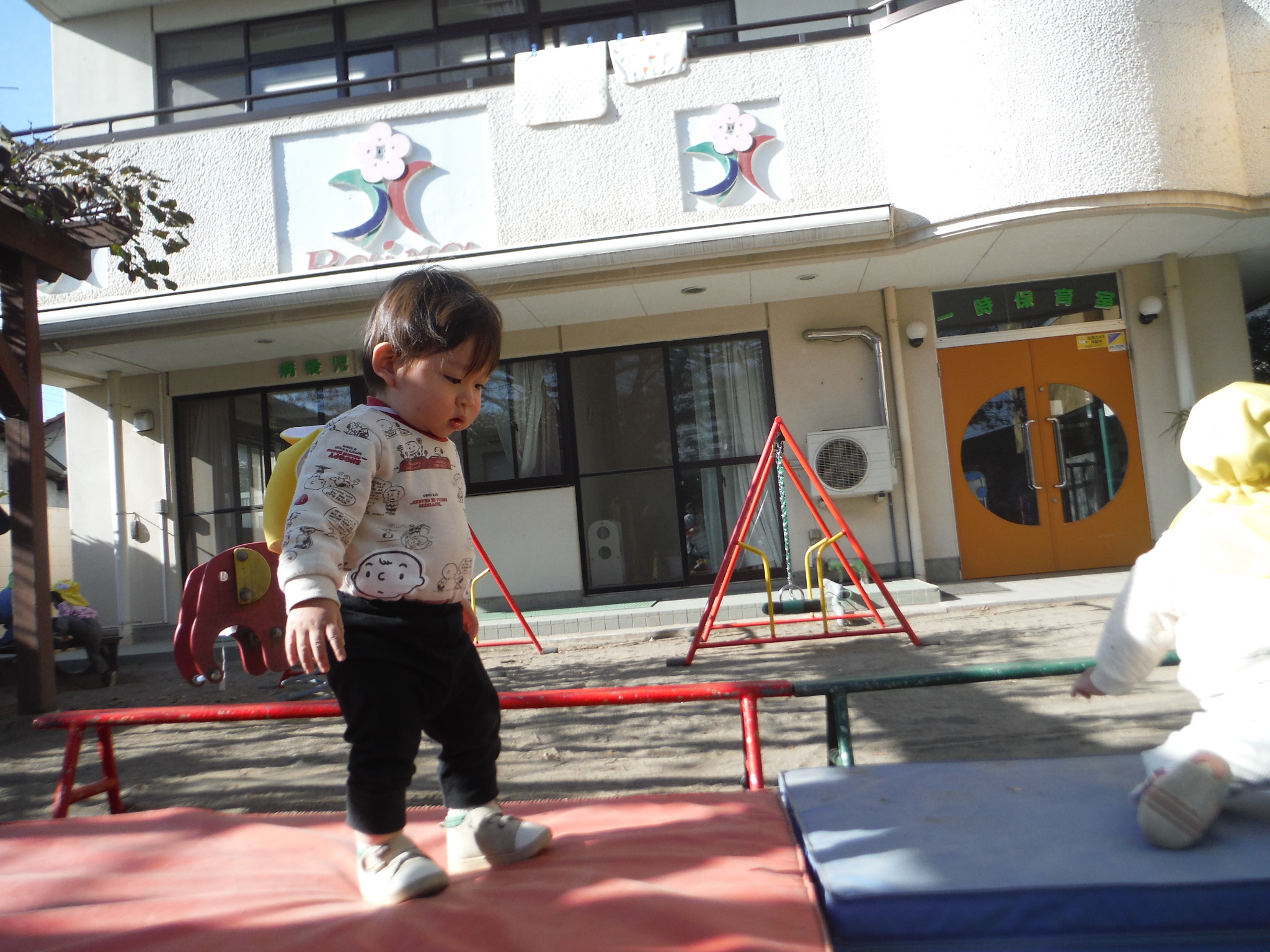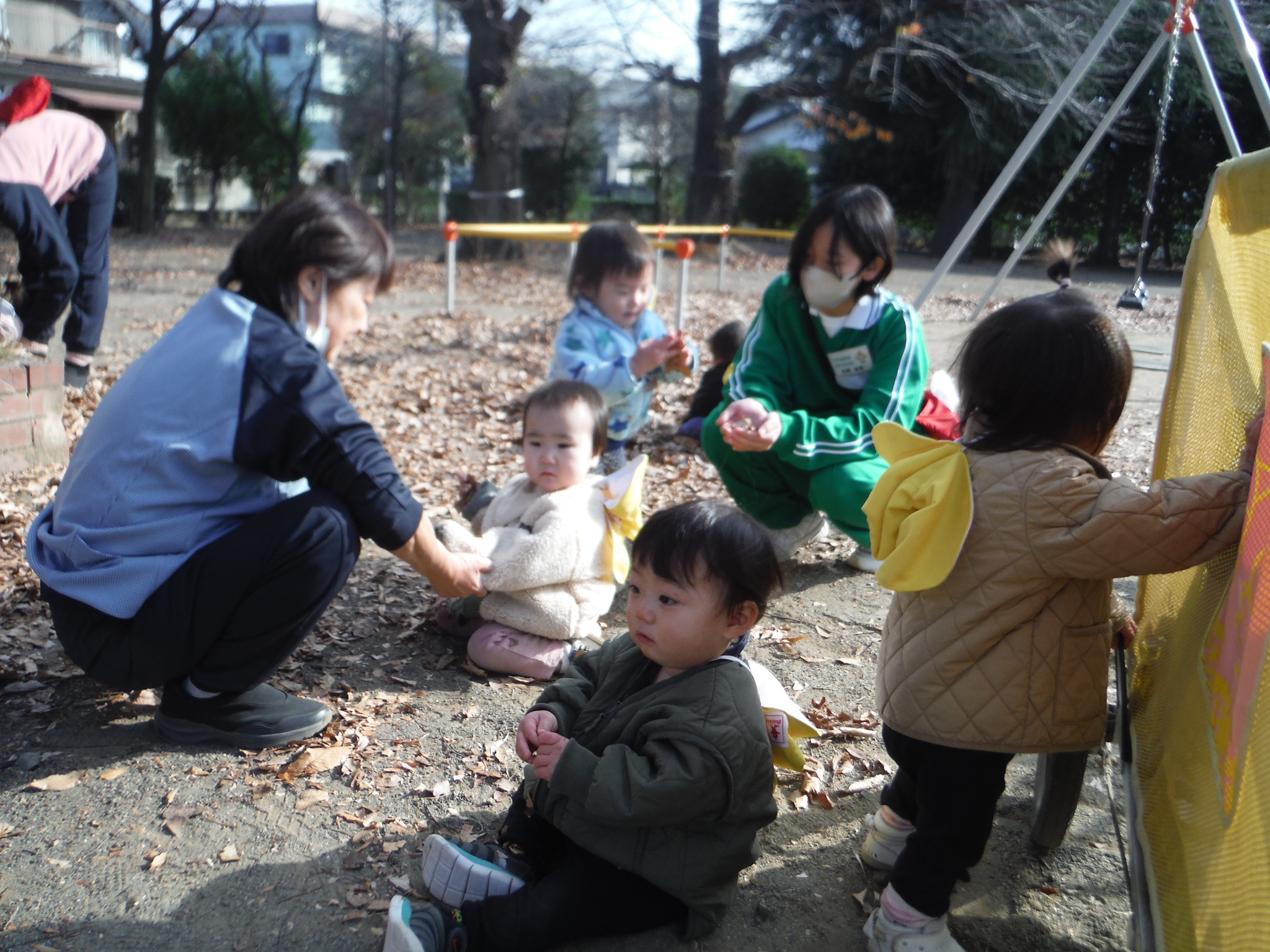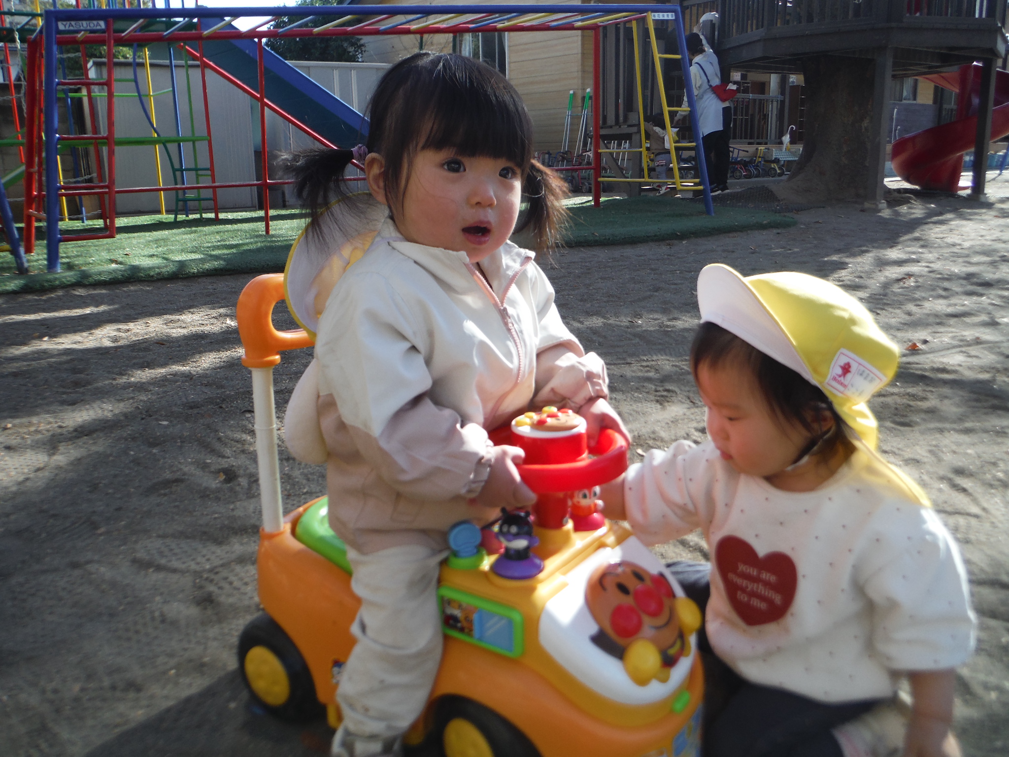 滑り台に挑戦してみたり、大きいクラスのお姉さんたちとごはんごっこを楽しんだり。