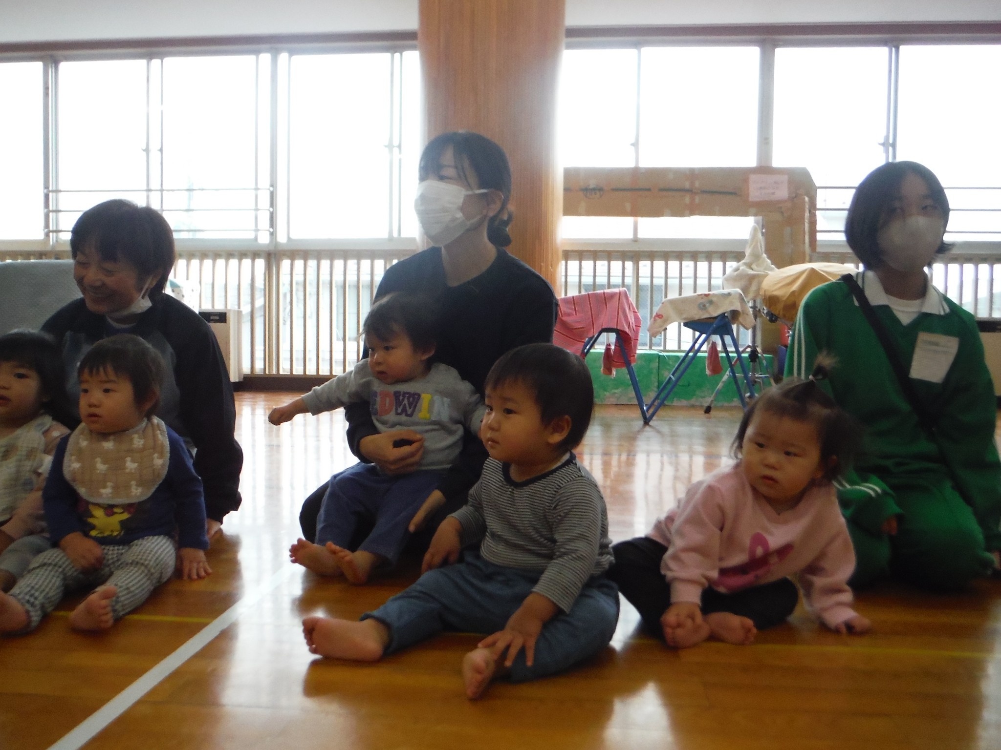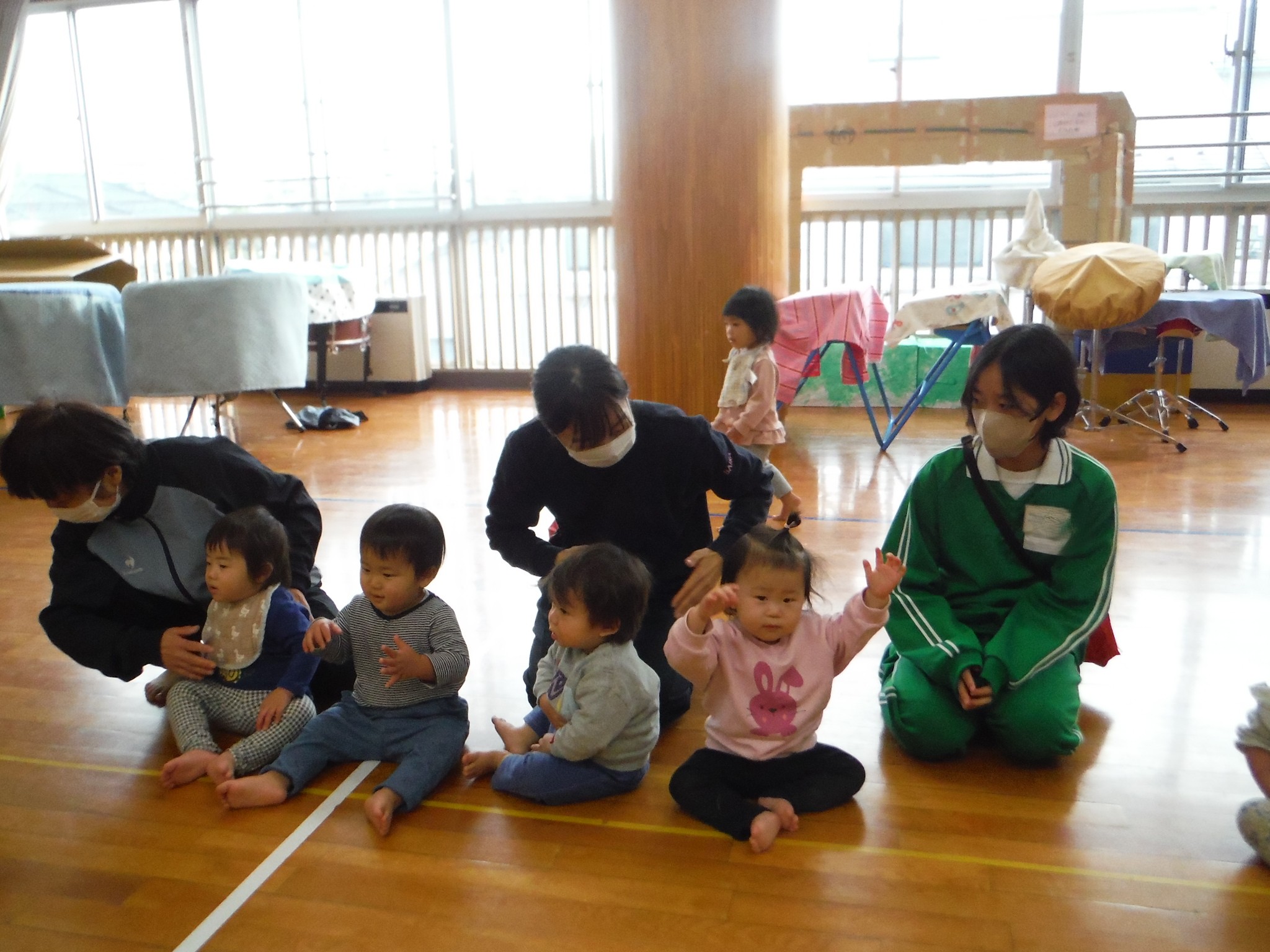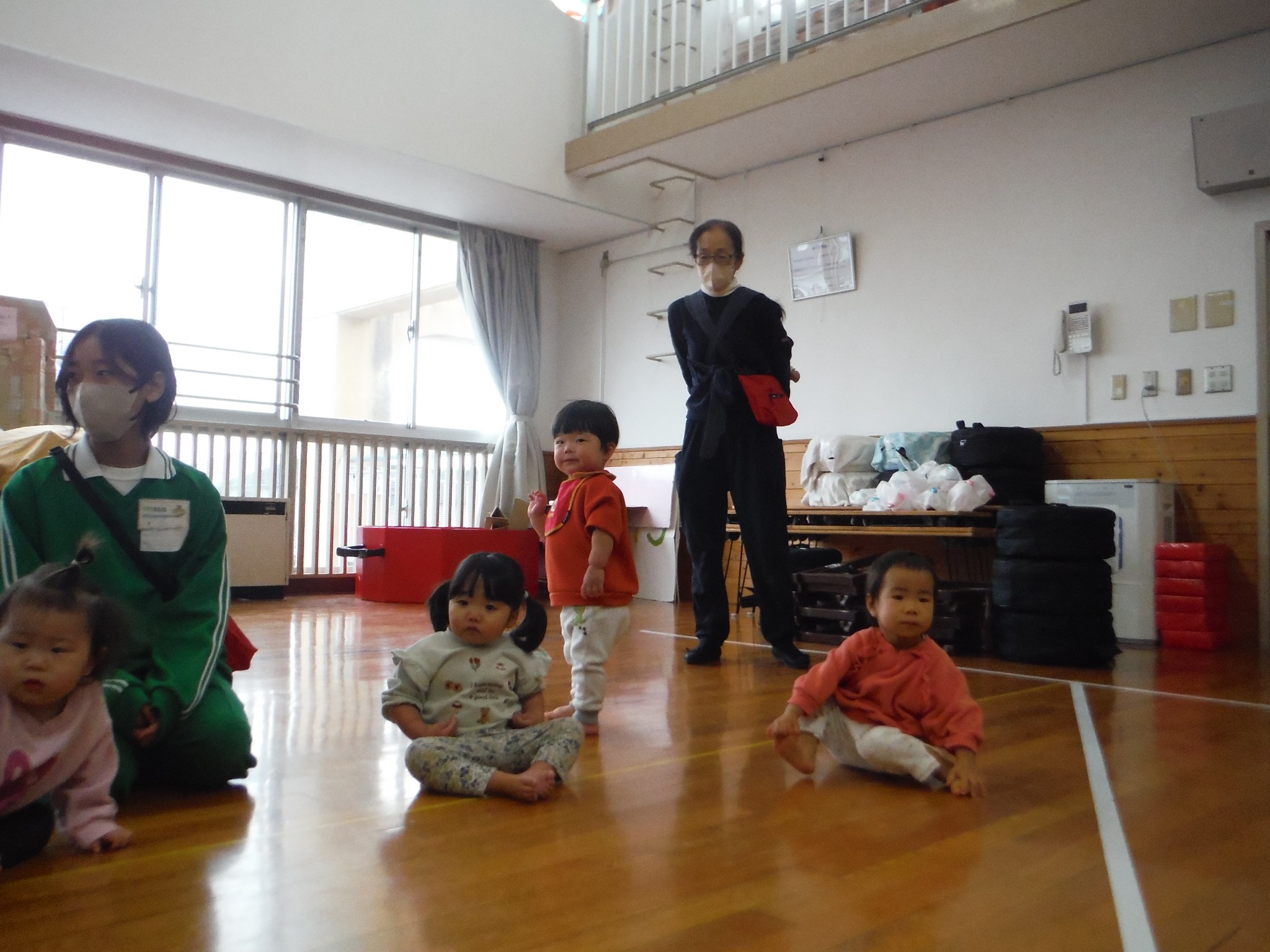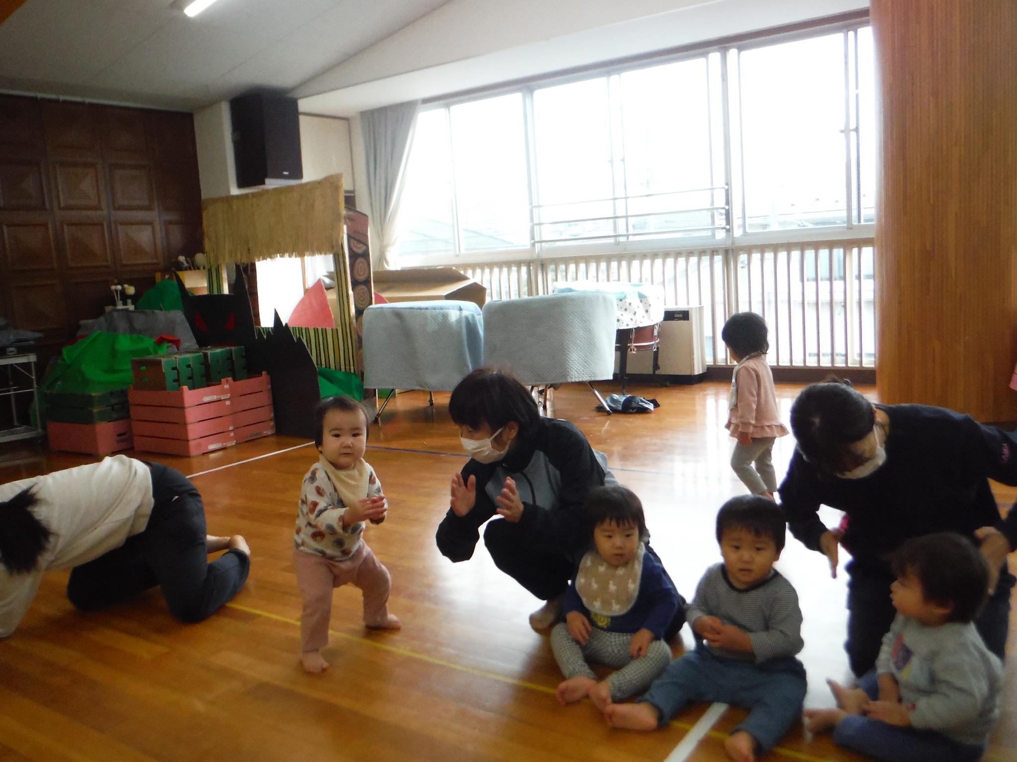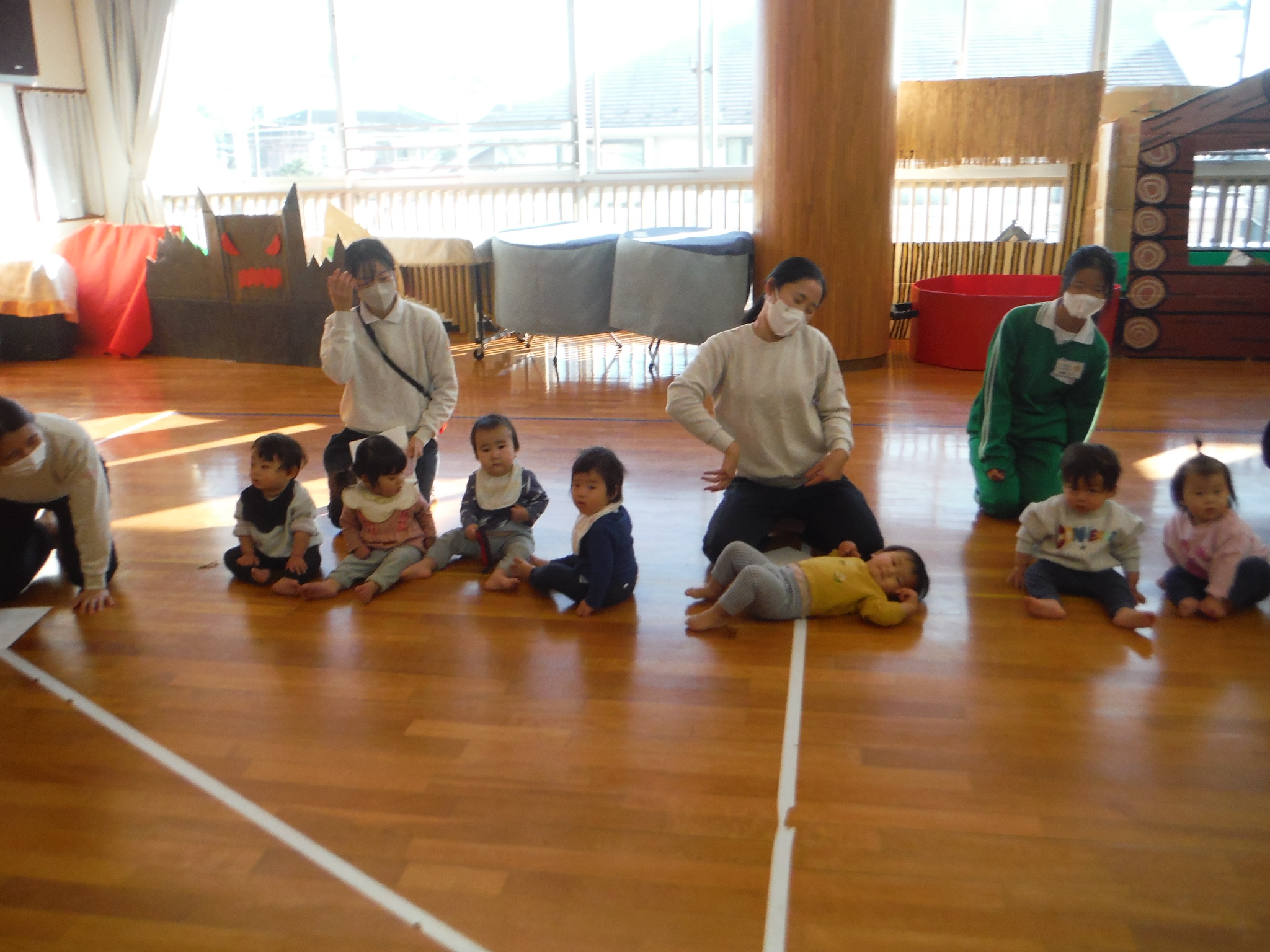 線上に並んでお返事じょうずにできるかな?先生のお膝の上で揺られてニコニコ😊