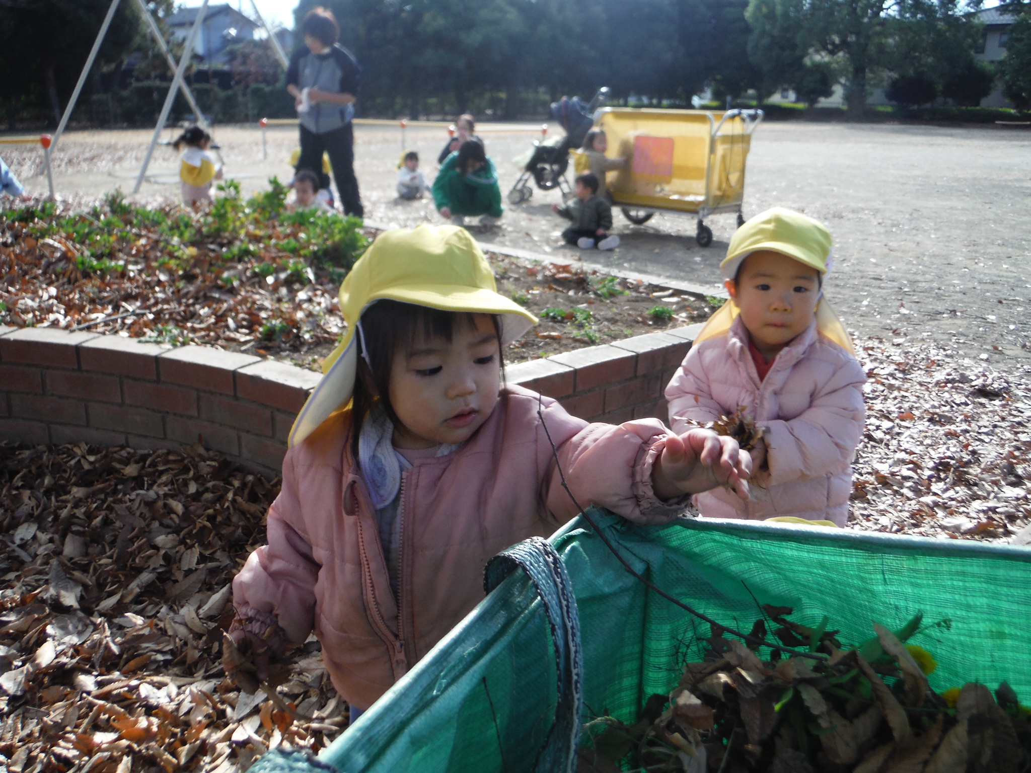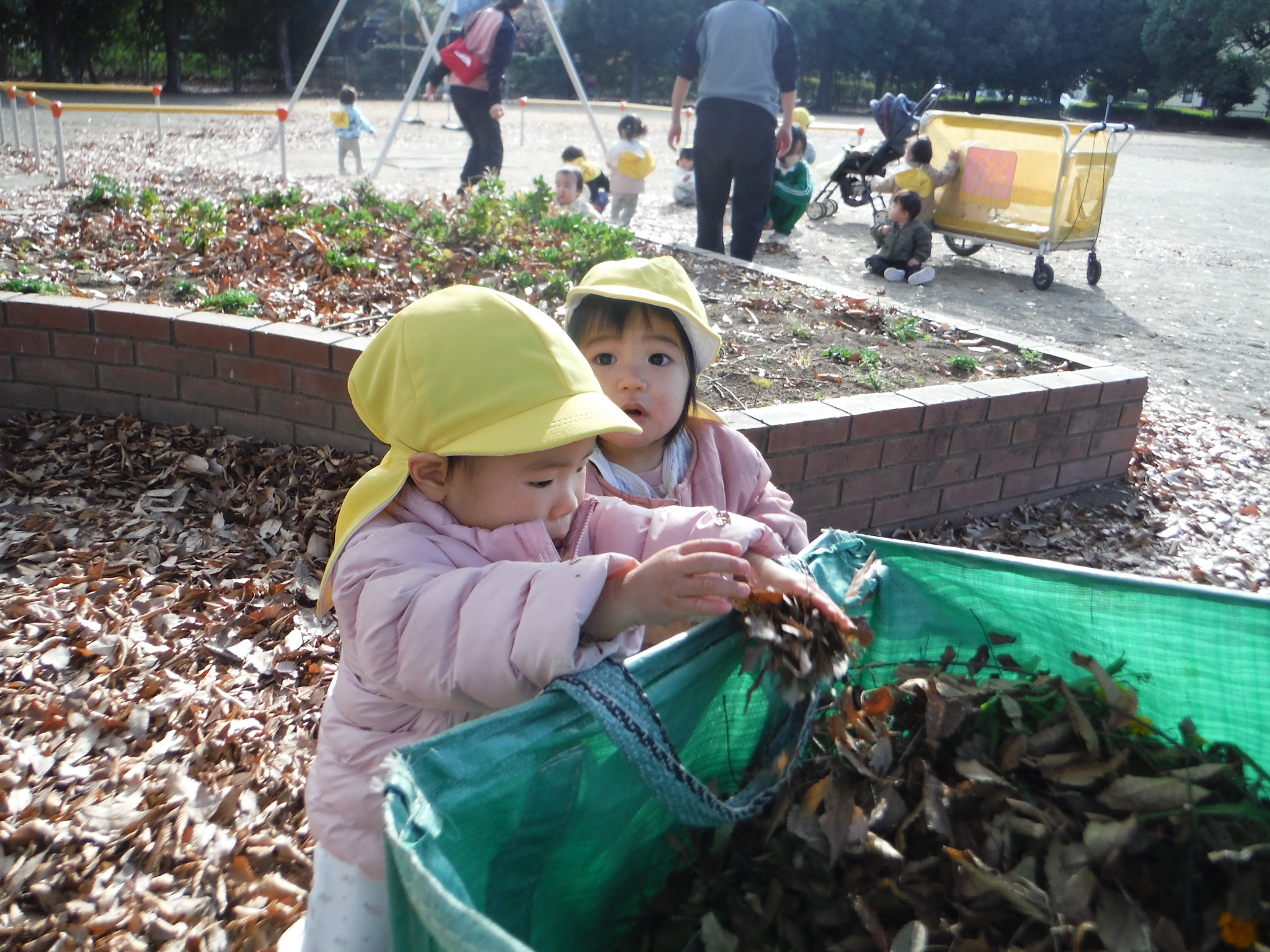 葉っぱの掃除のお手伝いもしました。えらいね!