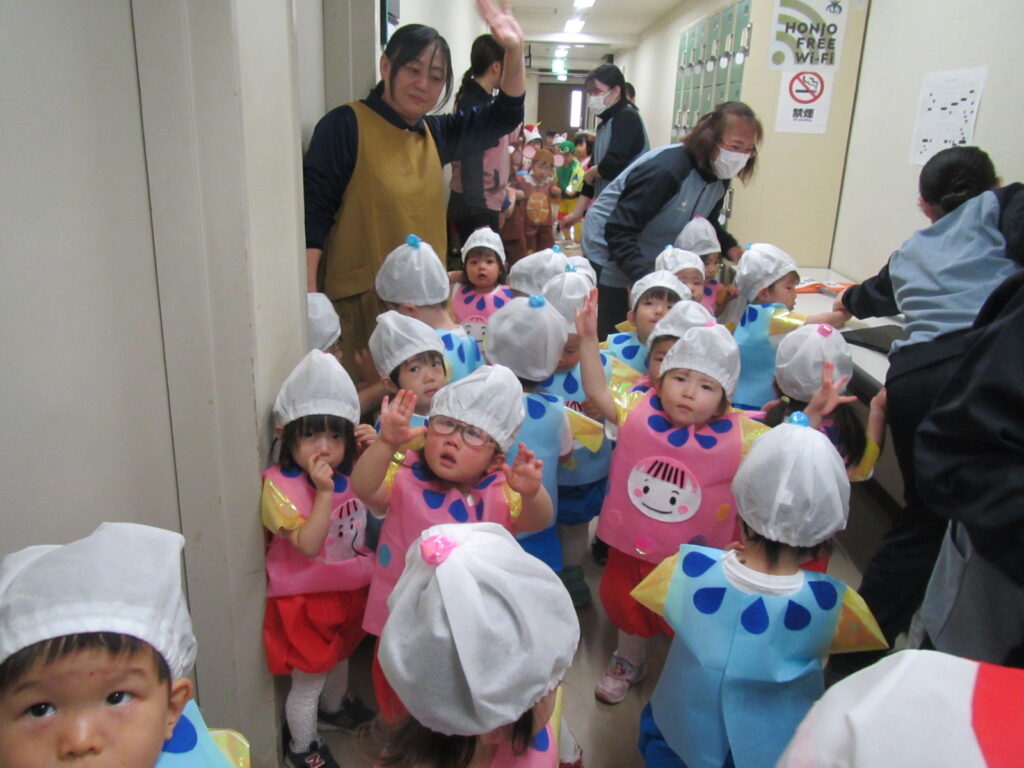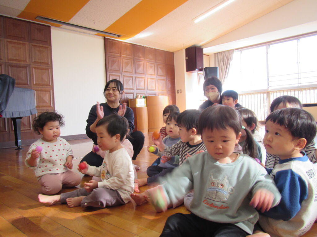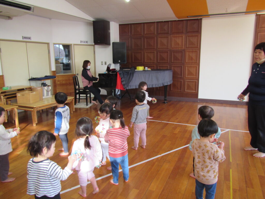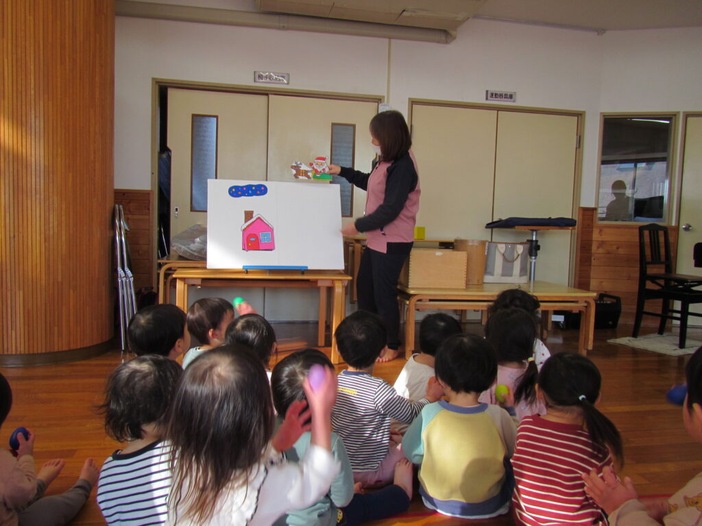 音楽に合わせて楽しく体を動かしたり、パネルシアターをニコニコで見ています🎵
