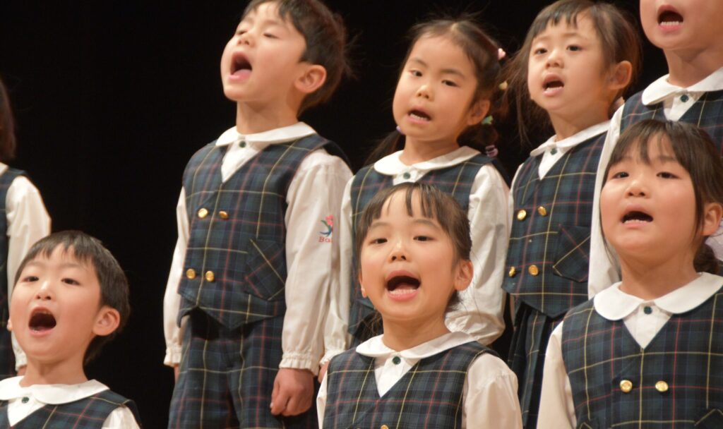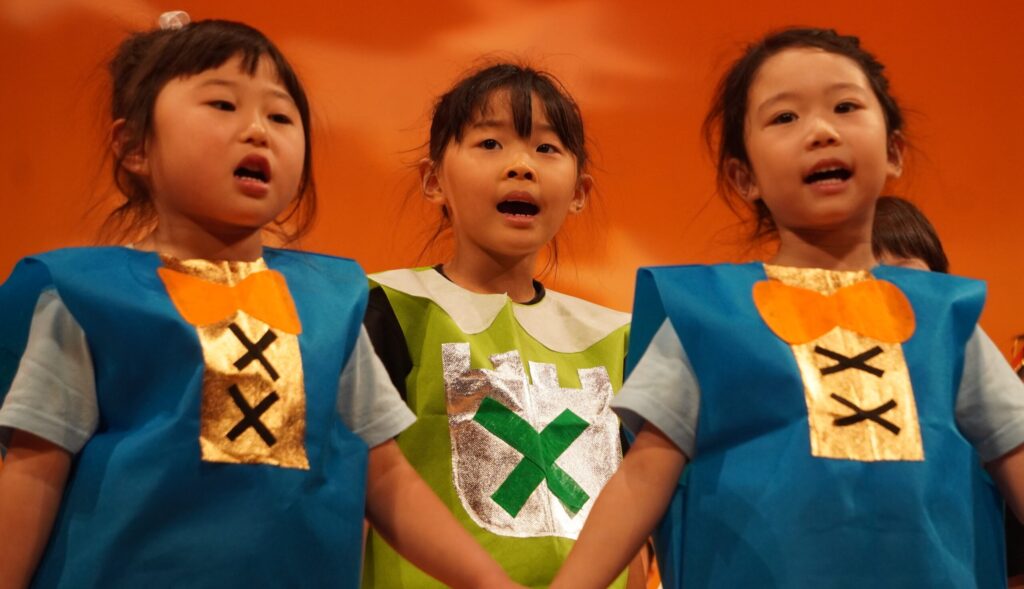 プログラム➀ つばめ組とんぼ組 合唱「勇気100%」「ベストフレンド」