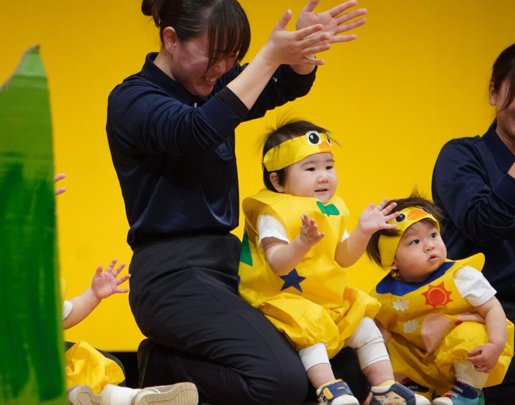 ひよこ組(0歳児) たんぽぽ組(1歳児) ひまわり組(2歳児) すみれ組(3歳児) つばめ組(4歳児) とんぼ組(5歳児)