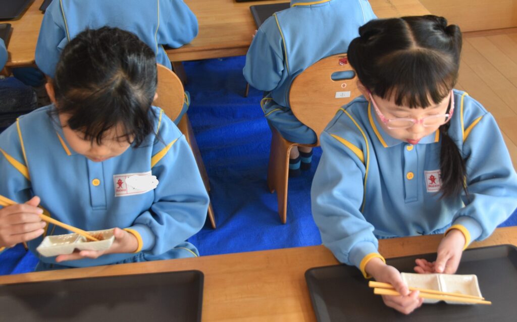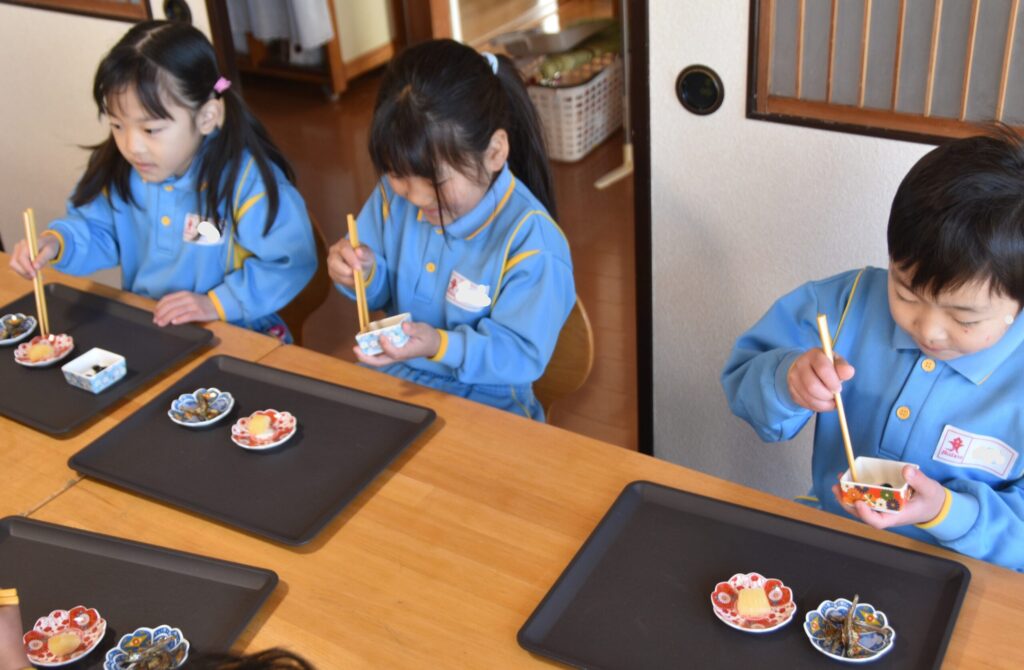 かずのこを初めて食べる園児もいましたが、「つぶつぶしてて美味しい」と全部食べられたお友達もいました😊
