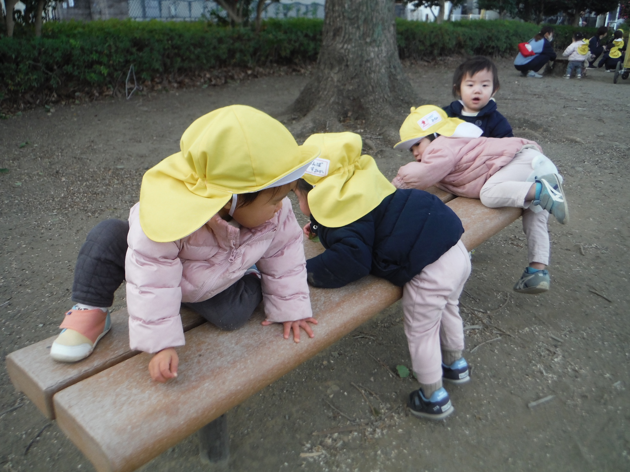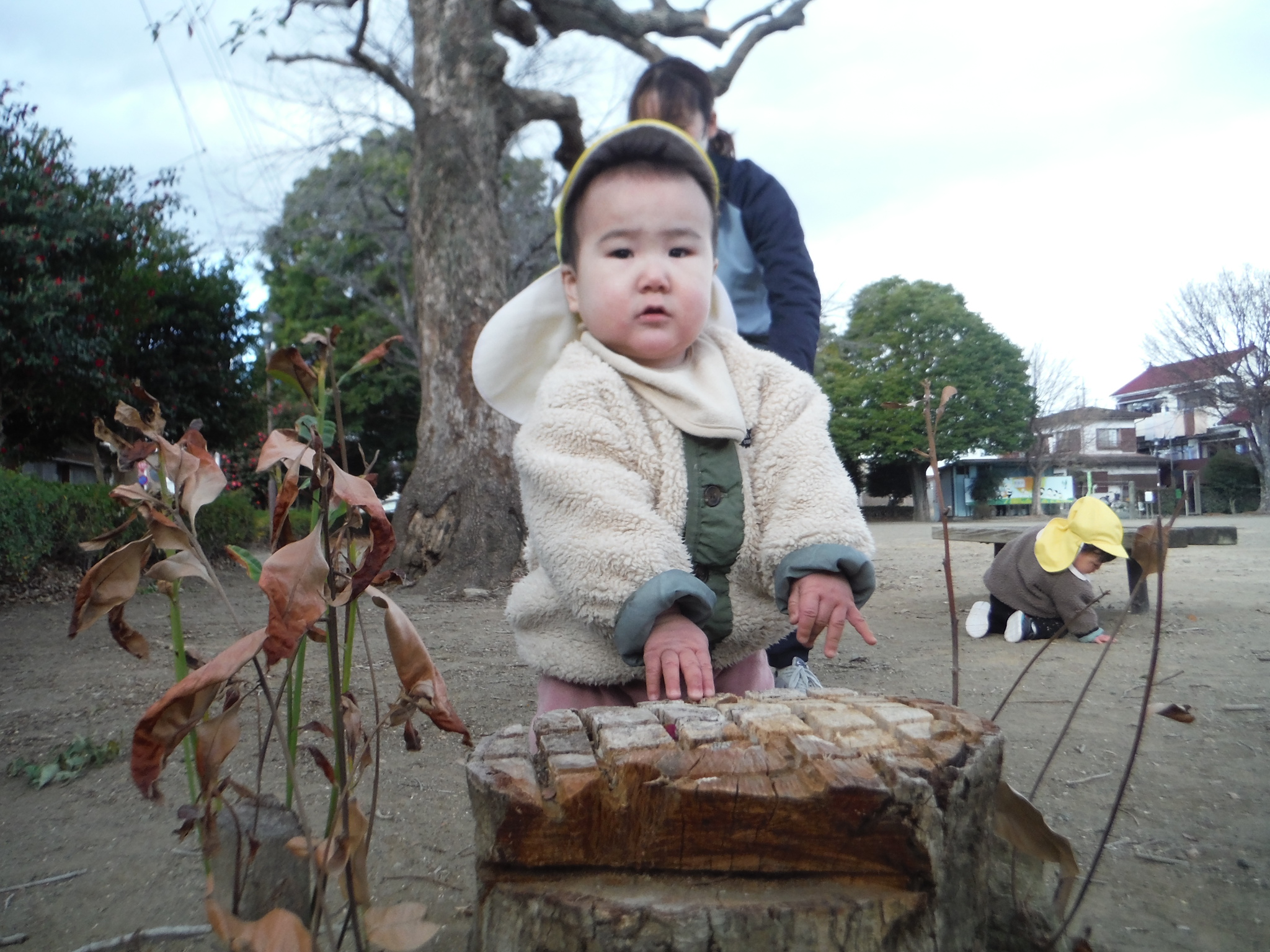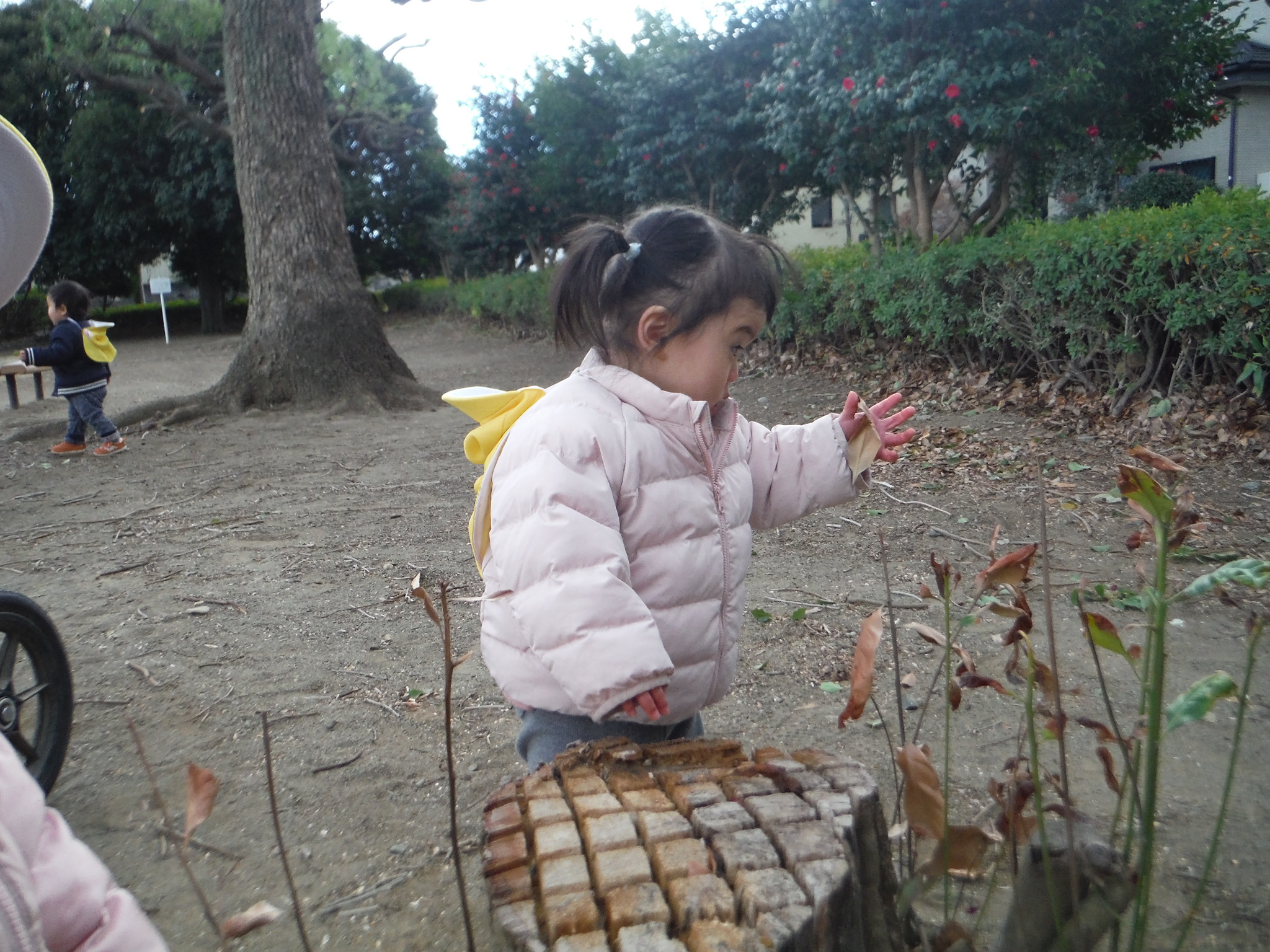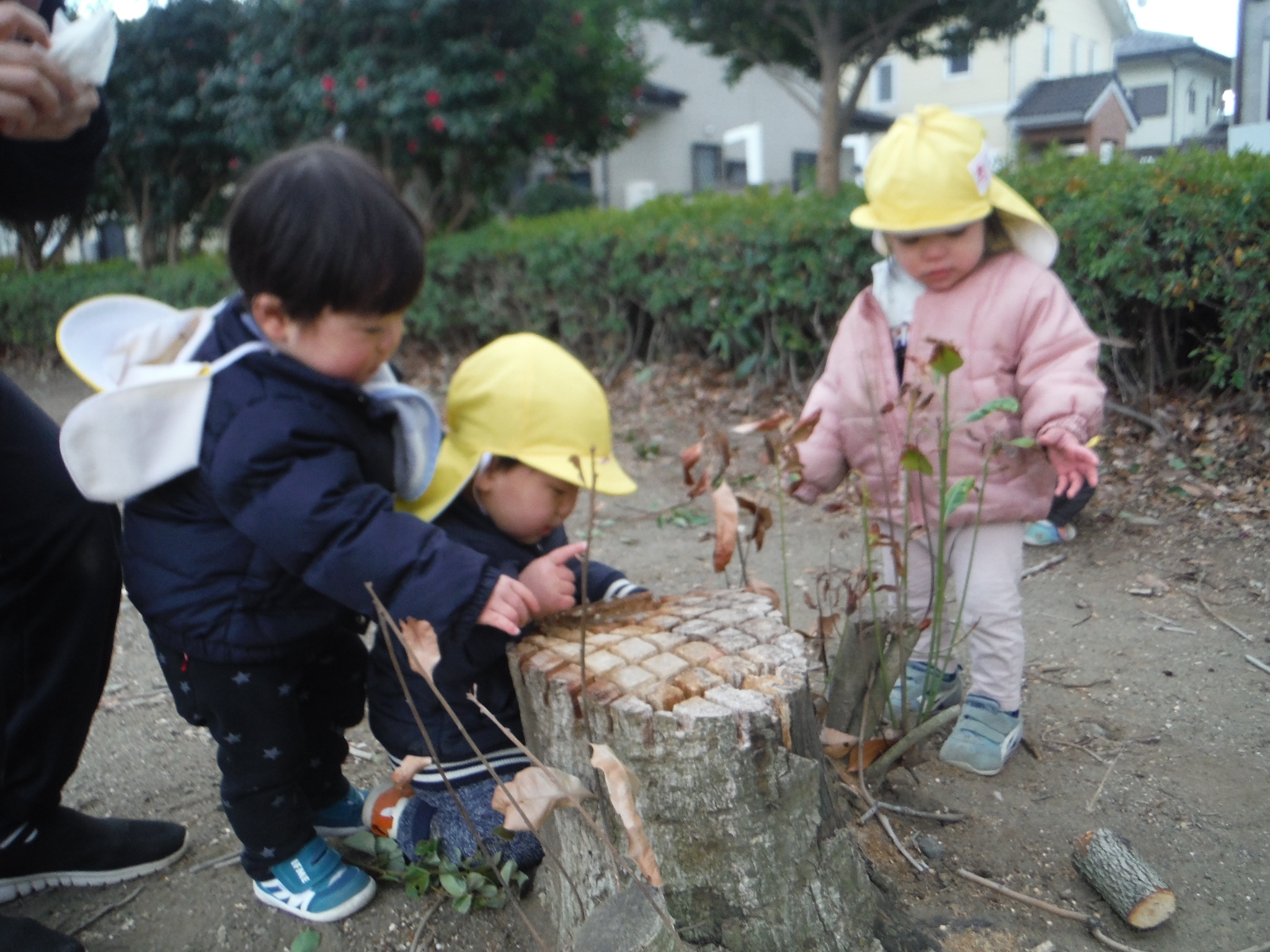 公園で遊びました!切り株発見!みんなで「何だろう?」と集まっている姿が可愛かったです。