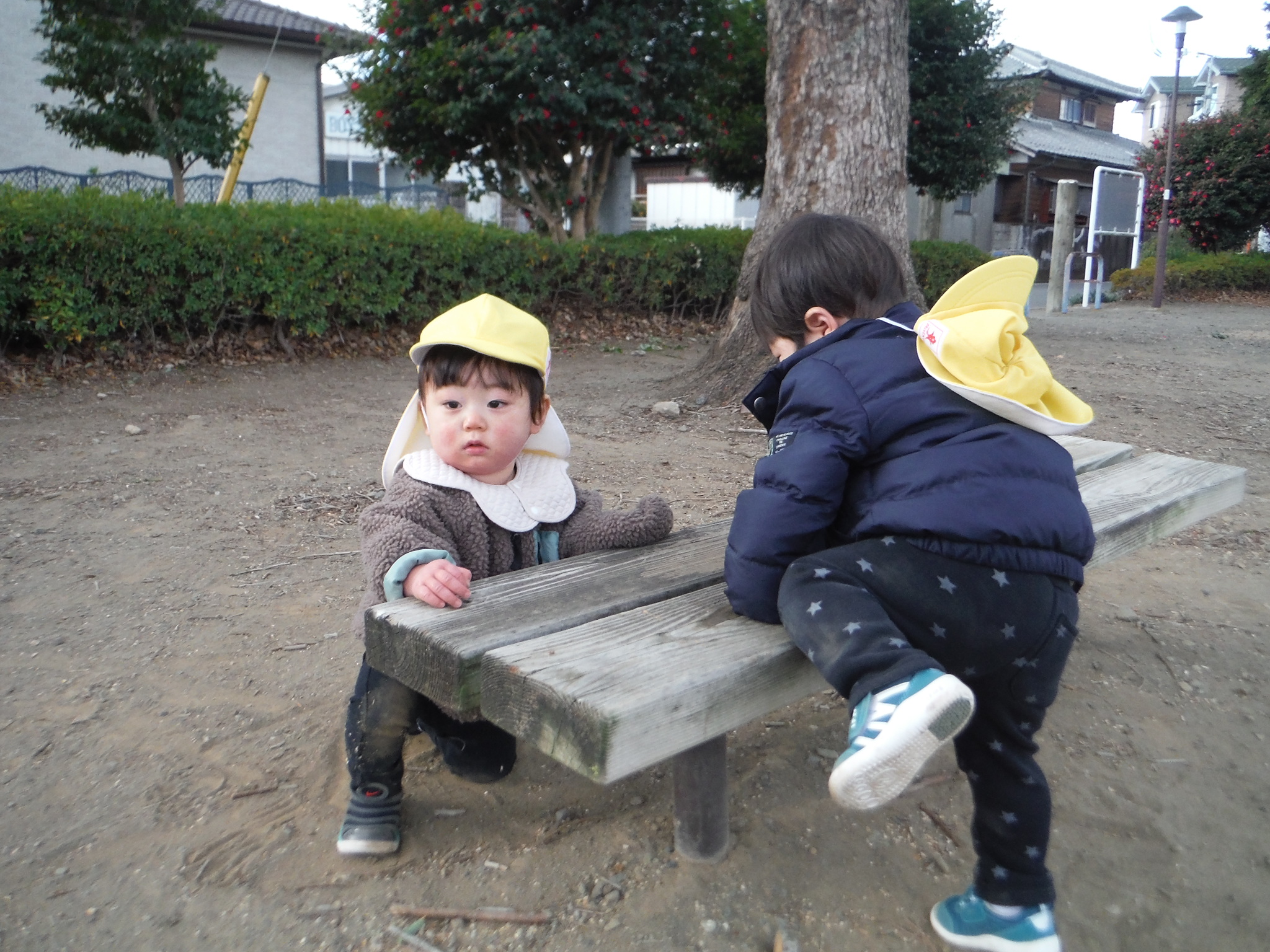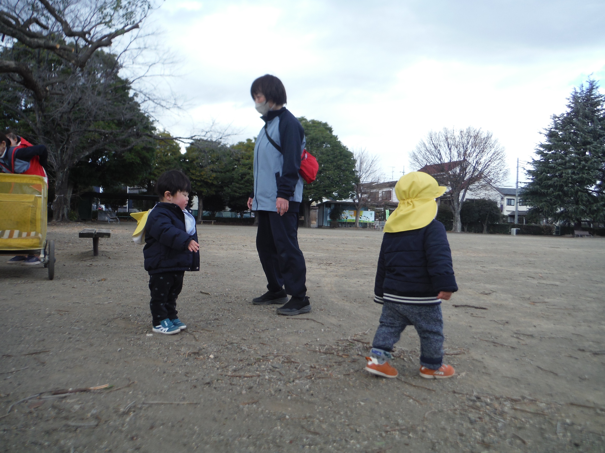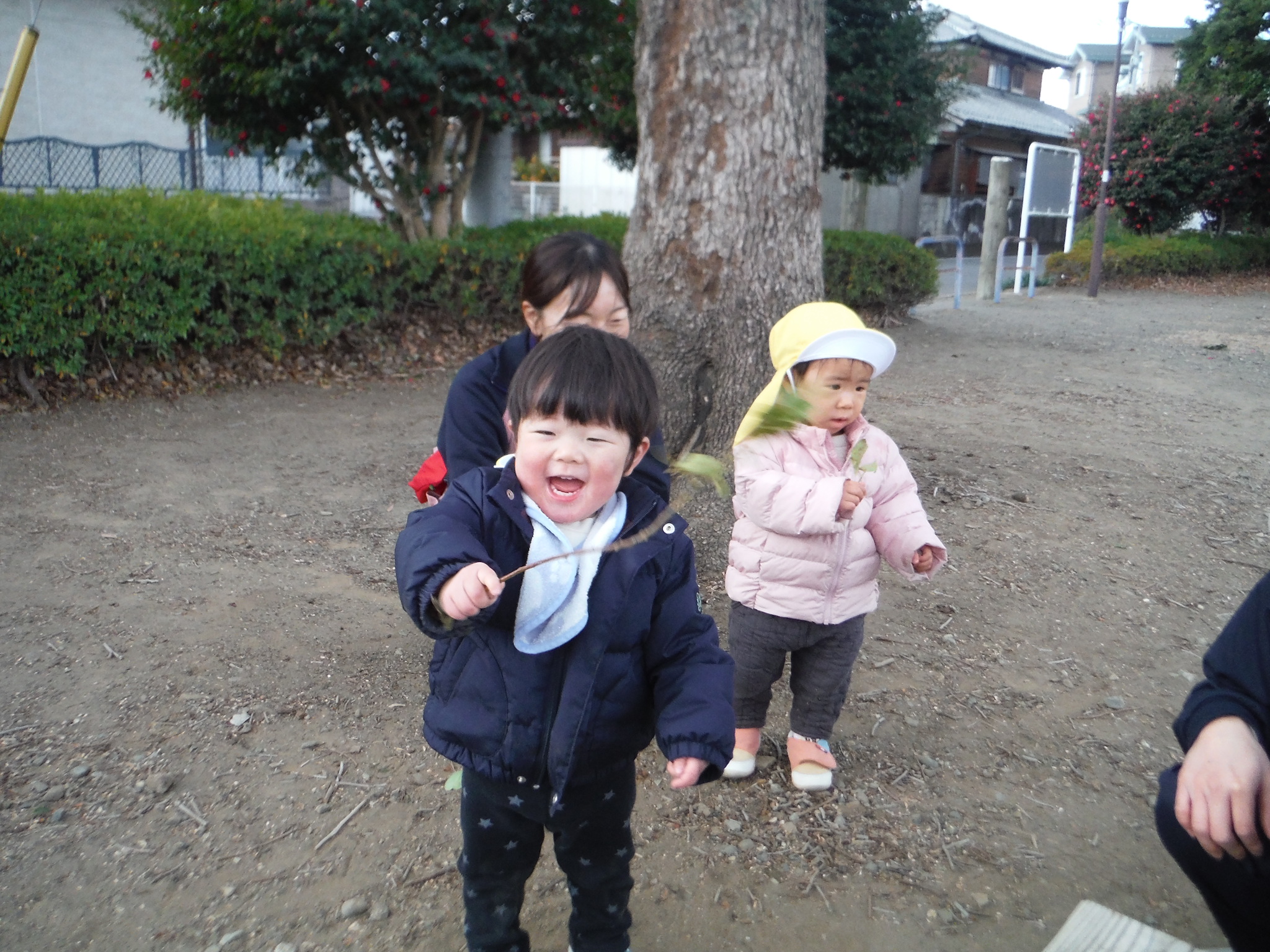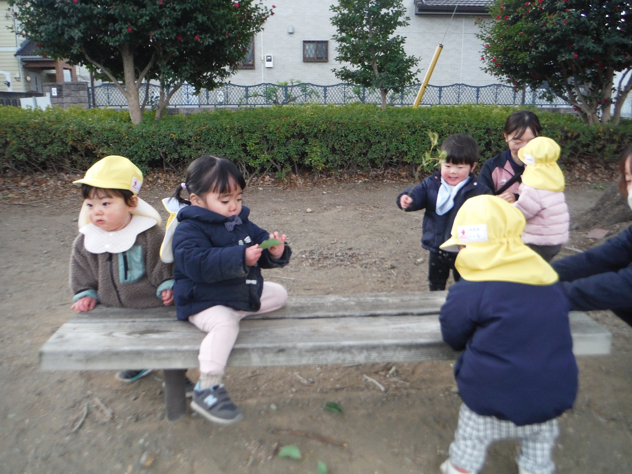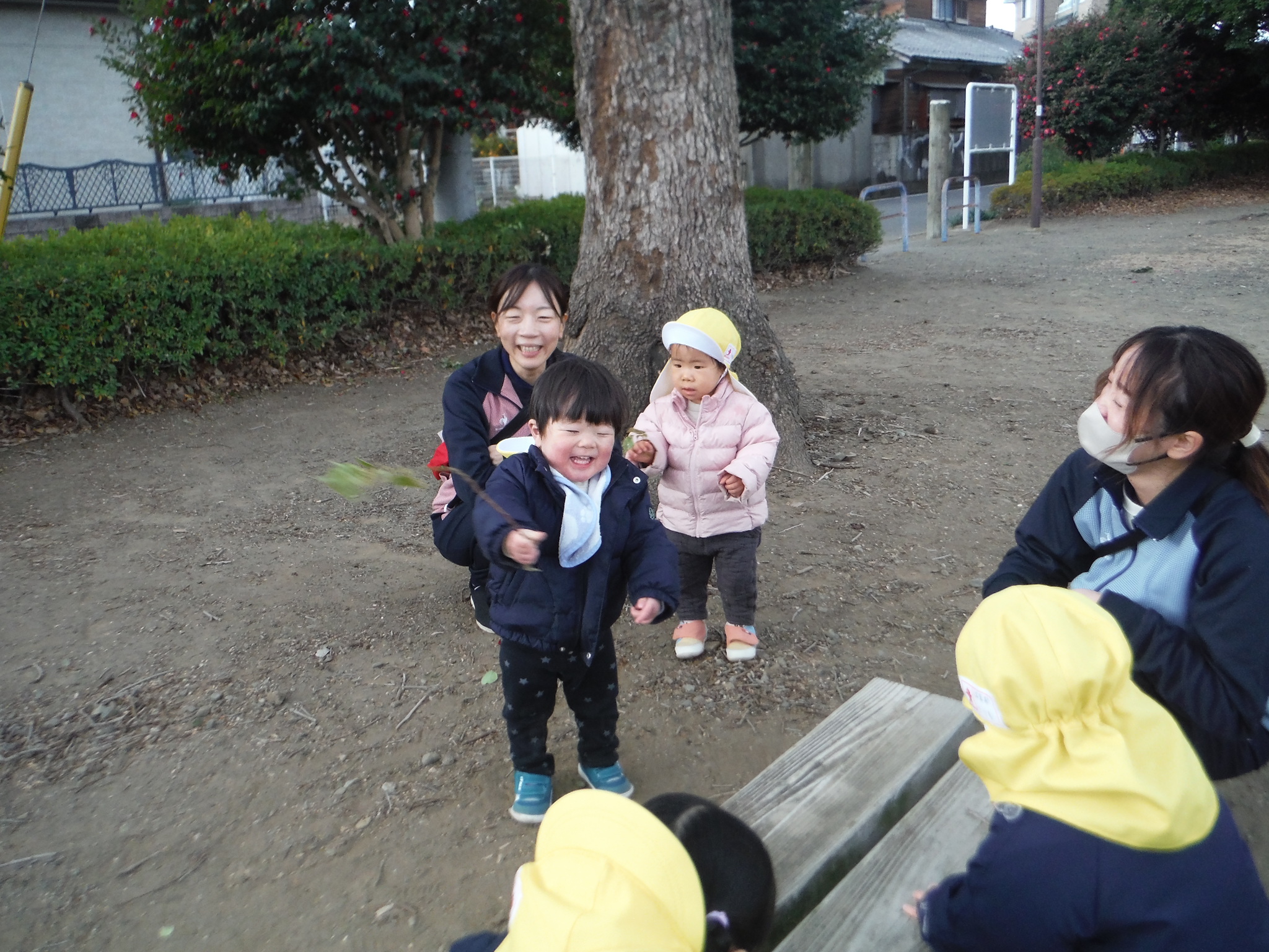 公園で遊びました!切り株発見!みんなで「何だろう?」と集まっている姿が可愛かったです。