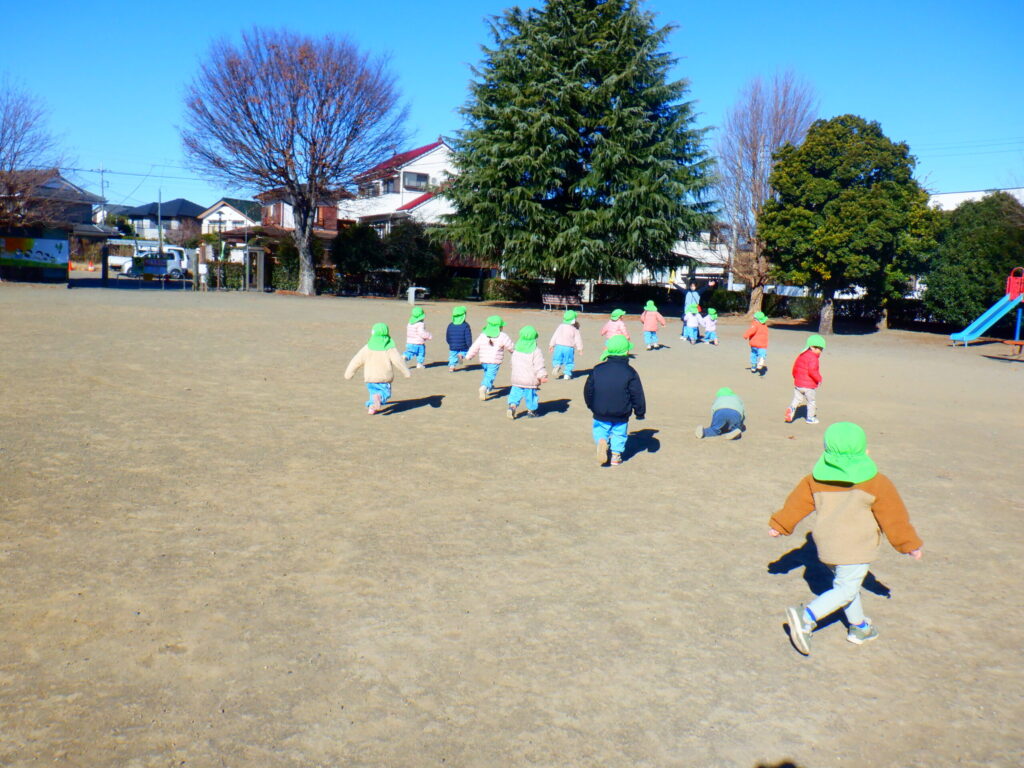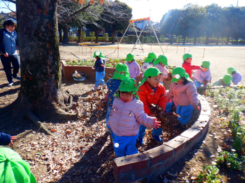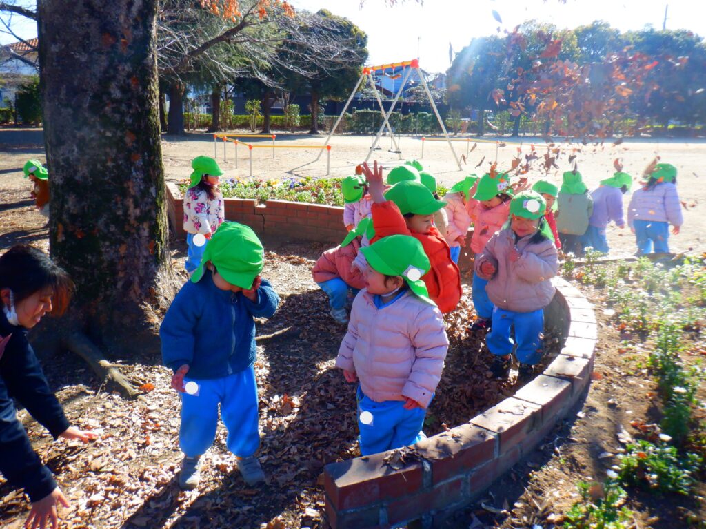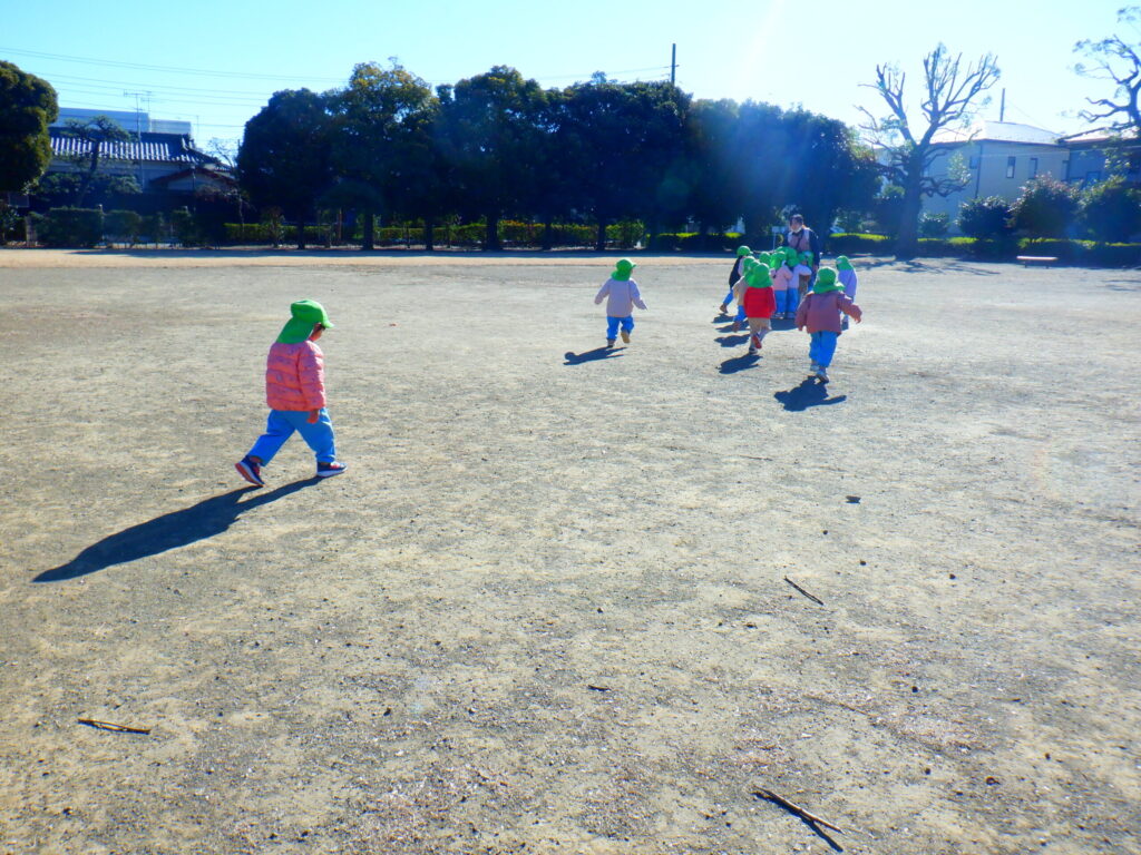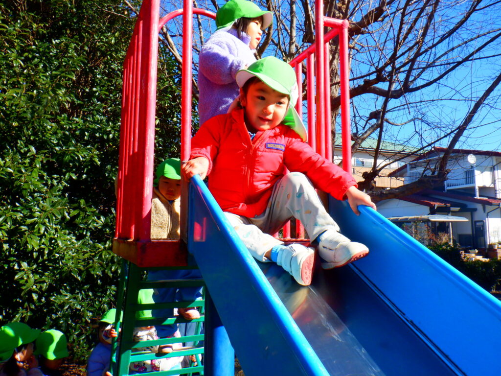 見福公園までお散歩に行きました!冬休み明けで久々のお散歩でしたが二人組でぎゅっと手を繋いで歩くことができました!高い滑り台を滑ったり、落ち葉を「ばー!」と投げてみたり公園内で楽しく過ごしました✨集まれー!の声を聞いて勢いよく走ったひまわり組さんでした😊