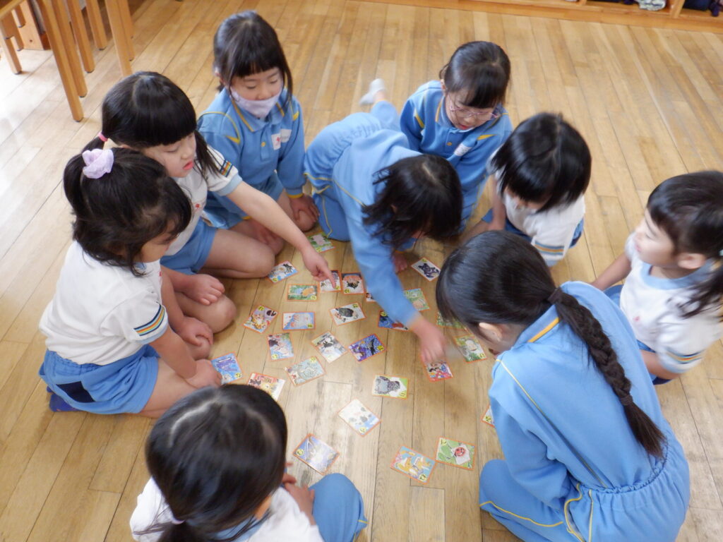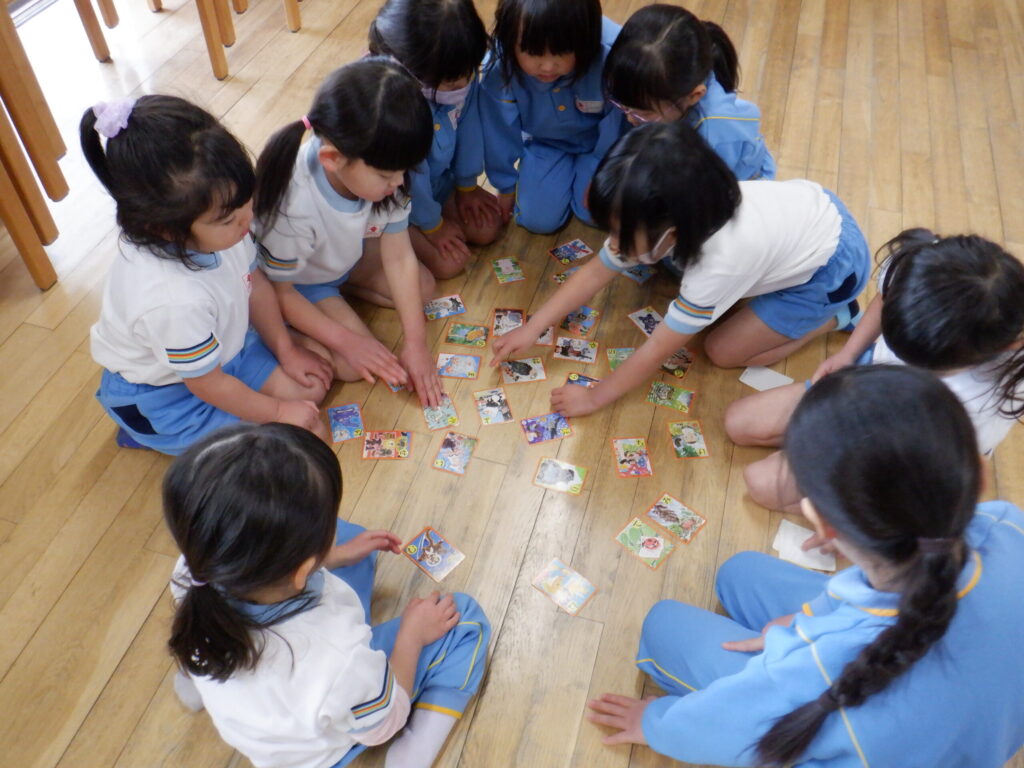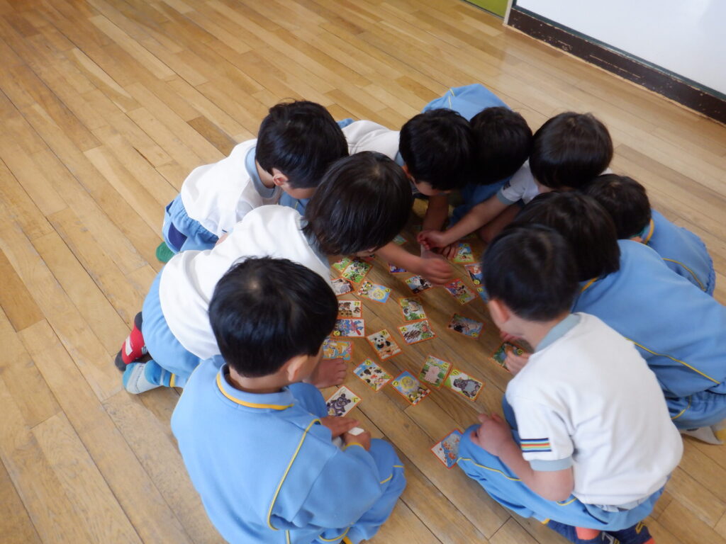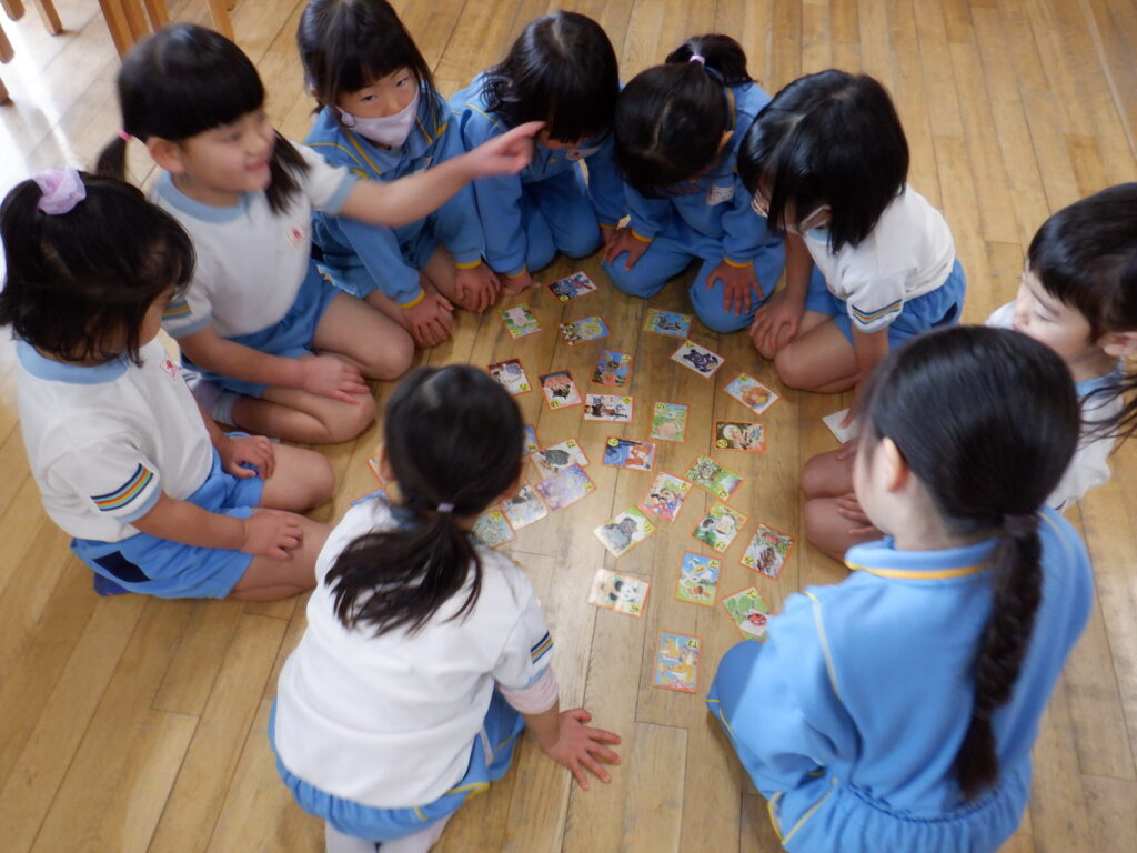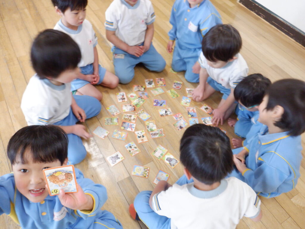 動物かるたという初めて使うかるたを行いましたが、みんな読み札をよく聞いたりかるたをよく見たりして「これだ!」「取れた!」と楽しくかるた取りをすることができました(^^)