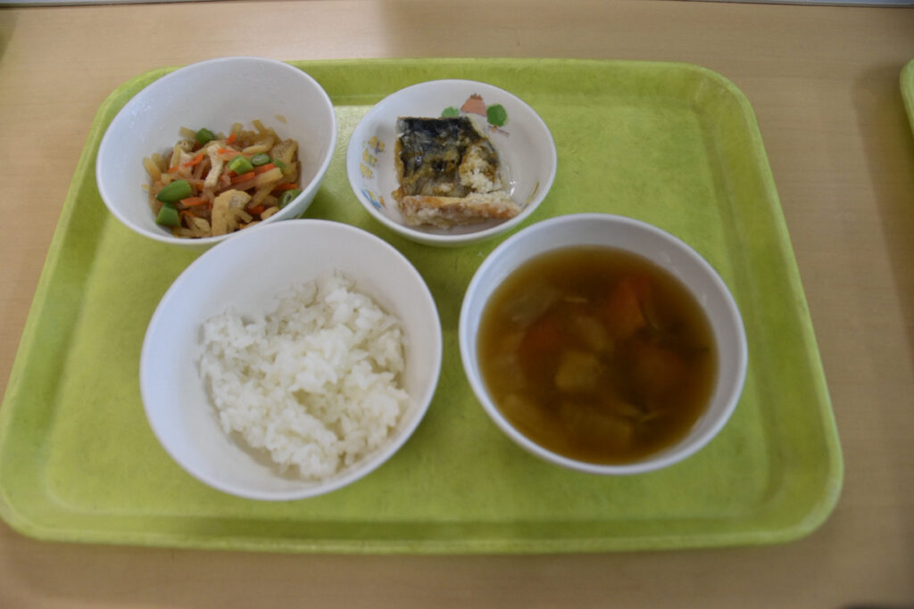 ・ご飯、お味噌汁、さばの竜田揚げ、切り干し大根、みかんでした♫