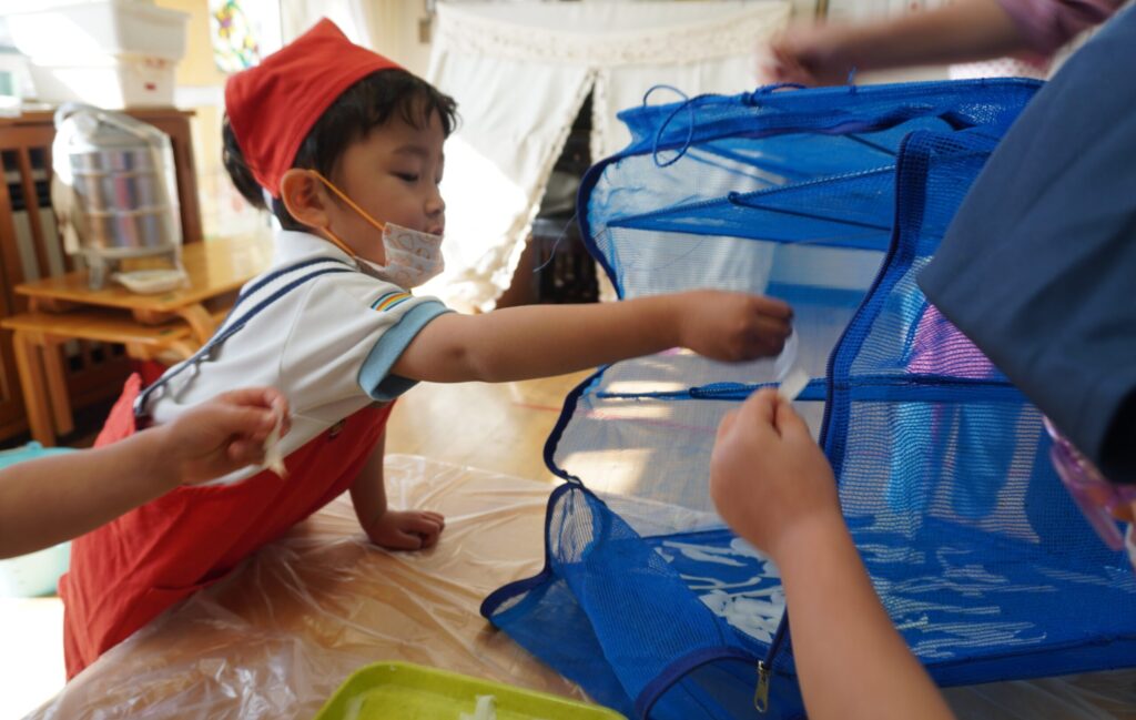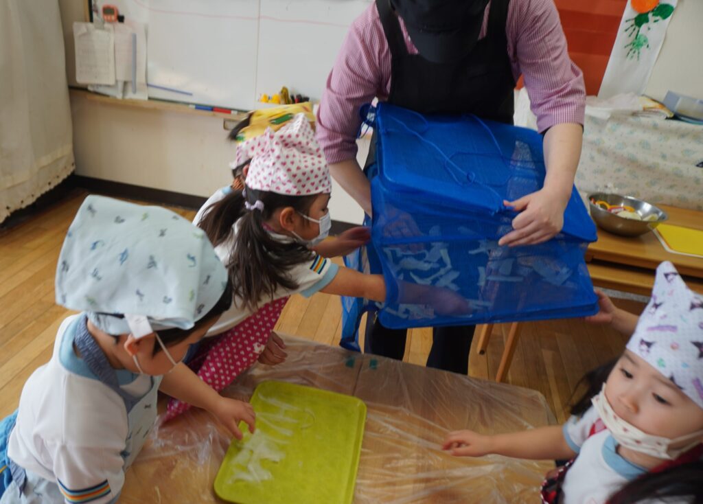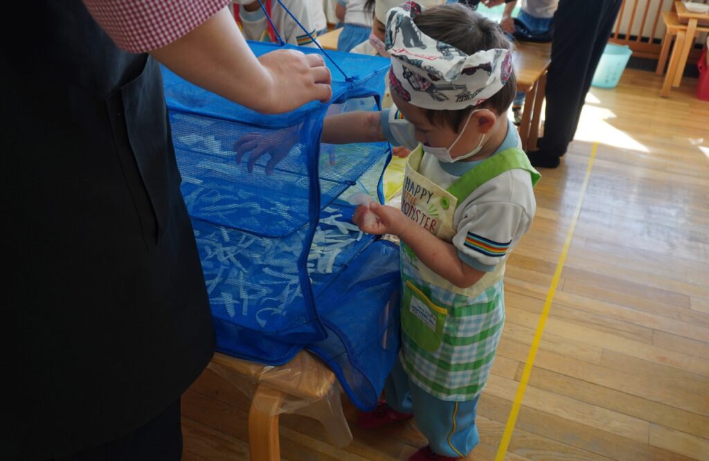 「自分でやりたい‼」「薄くなって楽しいね」と園児達楽しんで参加していました😊