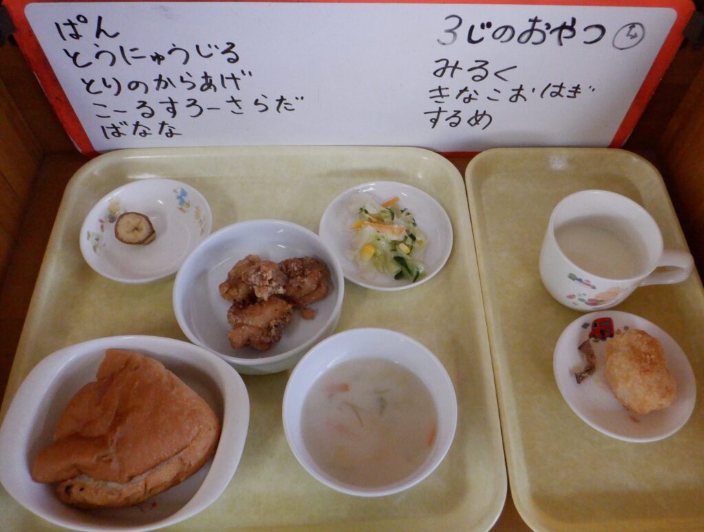 ・コッペパン ・豆乳スープ ・鶏のから揚げ ・コールスローサラダ ・ばなな