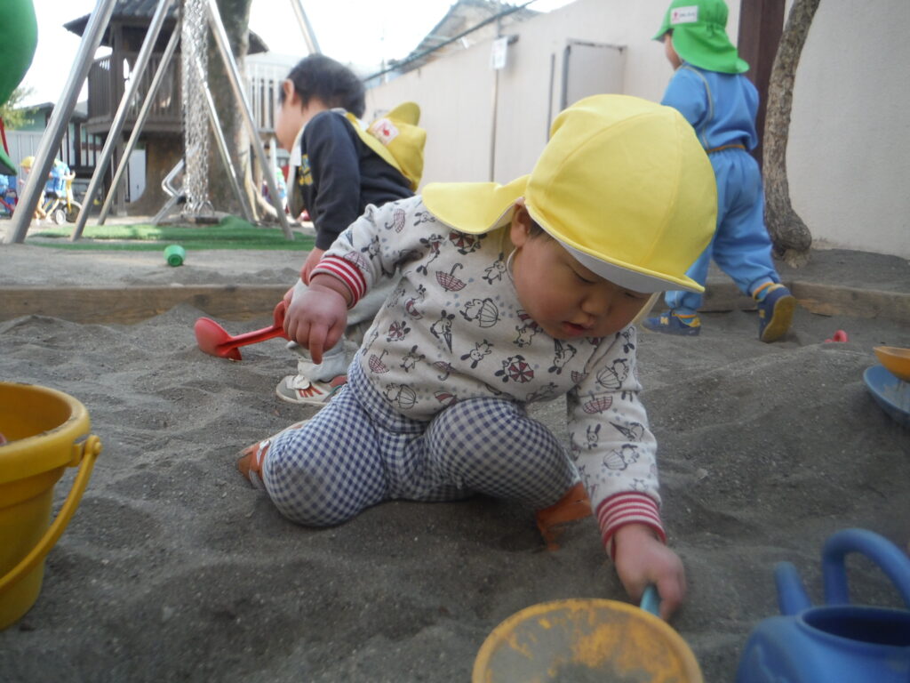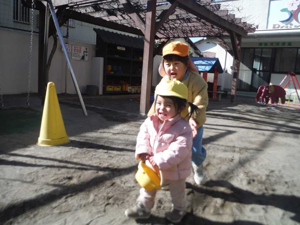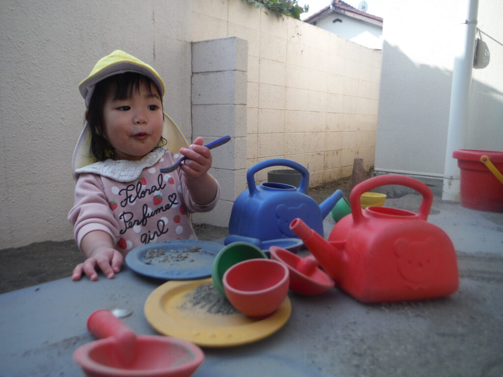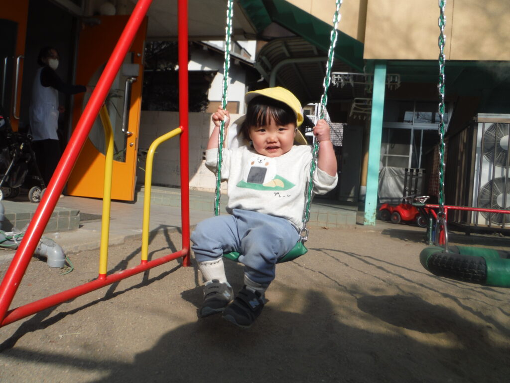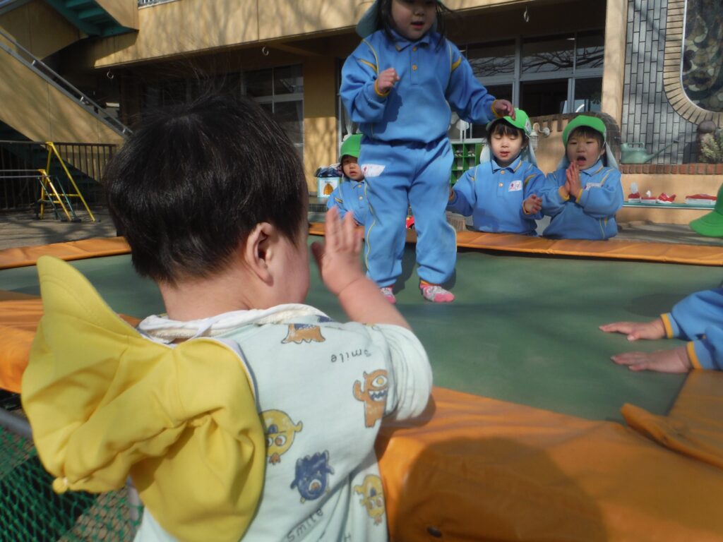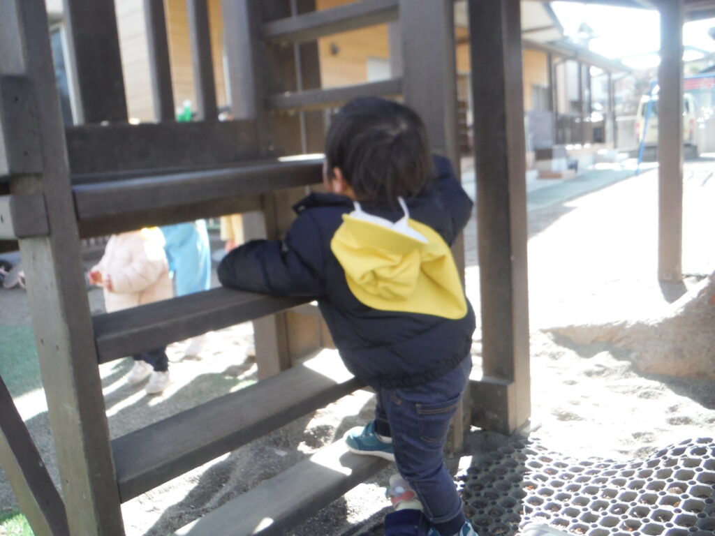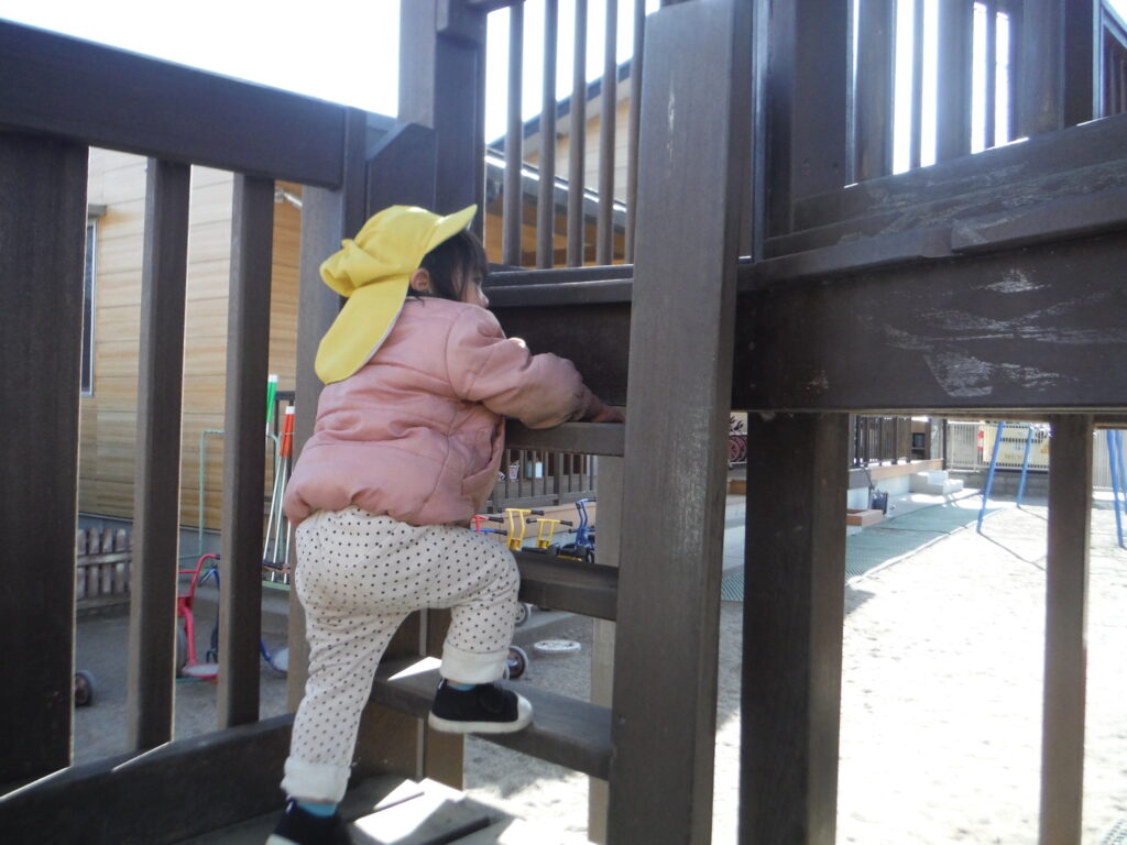今週もたくさんお外で遊びました。車にまたがってみたり、トランポリンに興味を持って一緒に順番を数えたりしていました。また、ツリーハウスを登れる子が増えました!ちょっと高くて不安だけど、登れた時の嬉しそうな表情が、輝いていました。