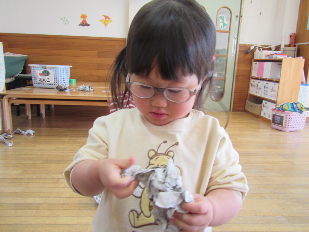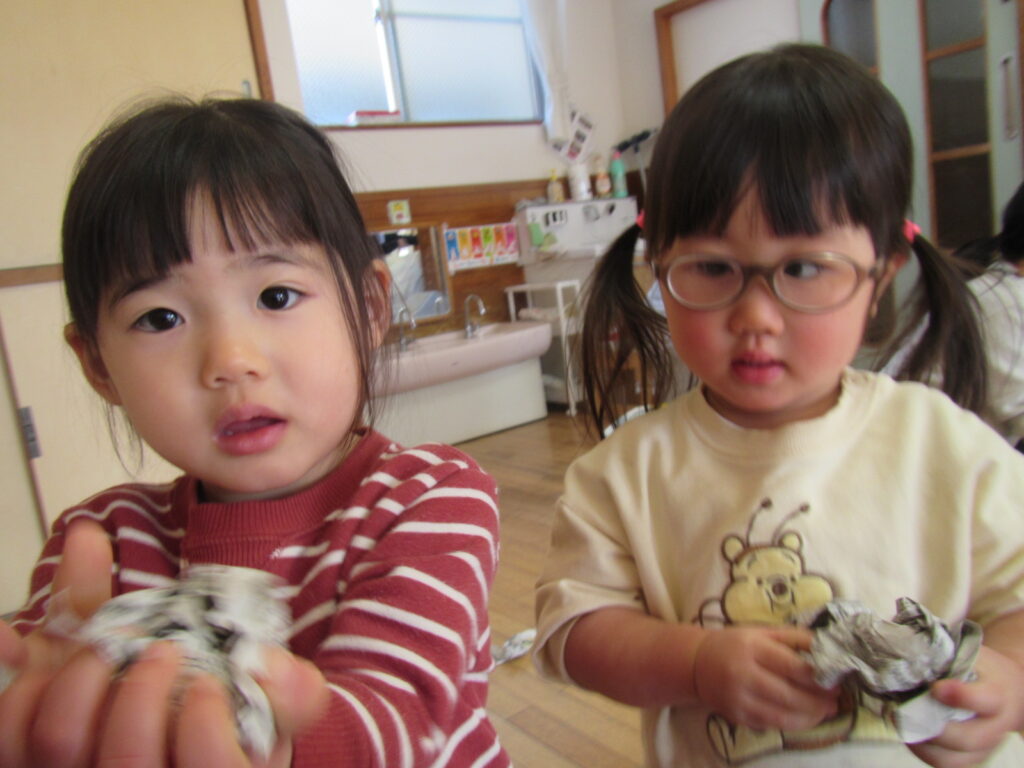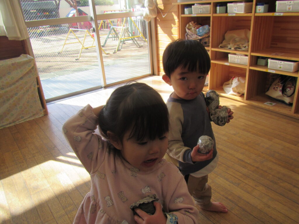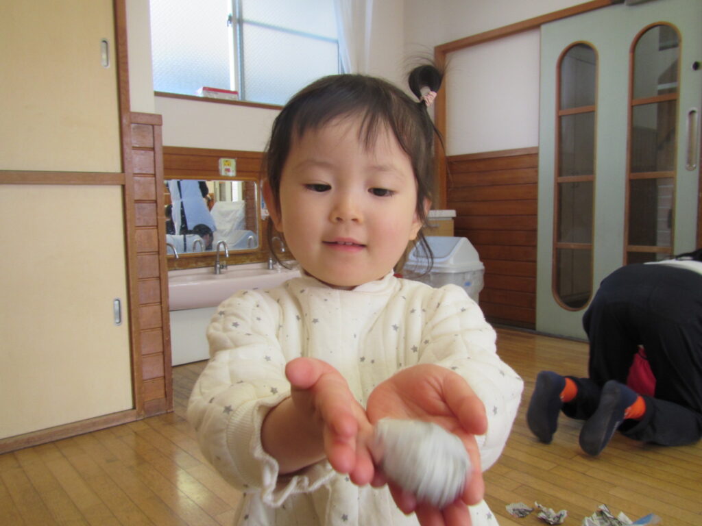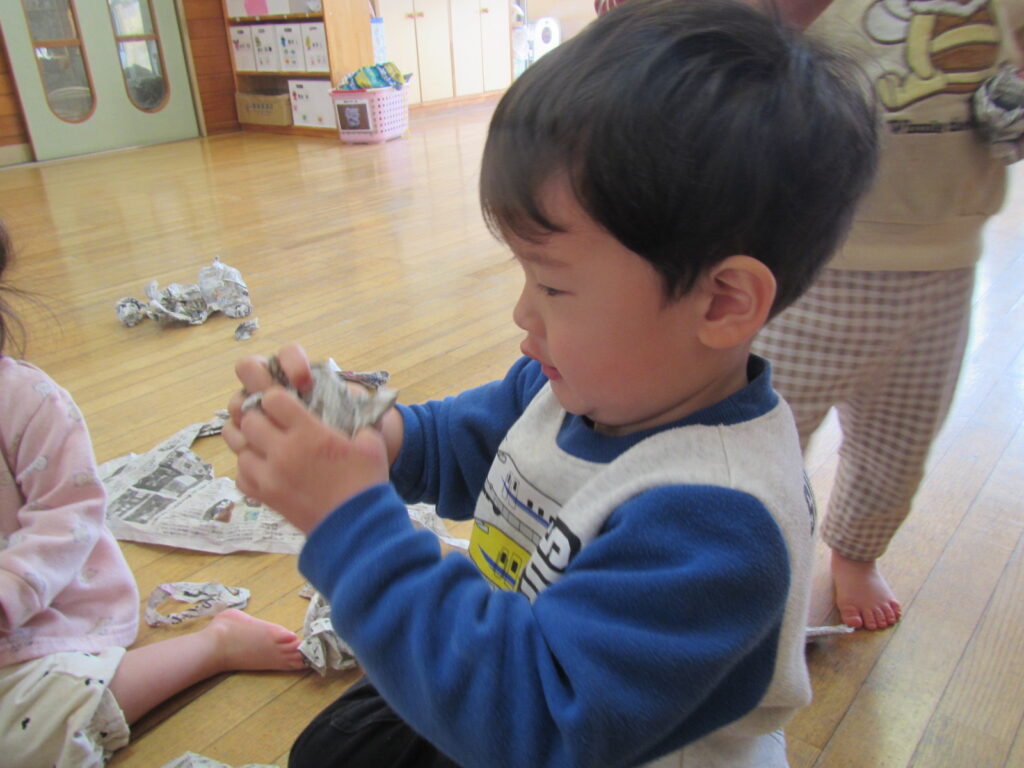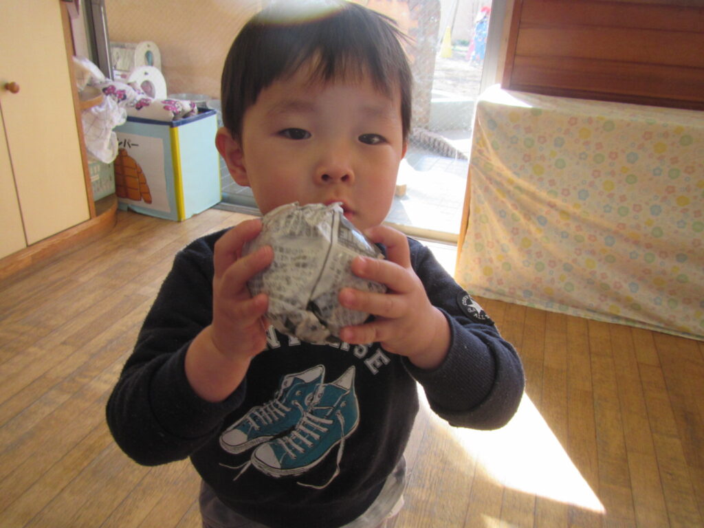 ぐしゃぐしゃに丸めたり、丸めた豆を投げたりしました😊