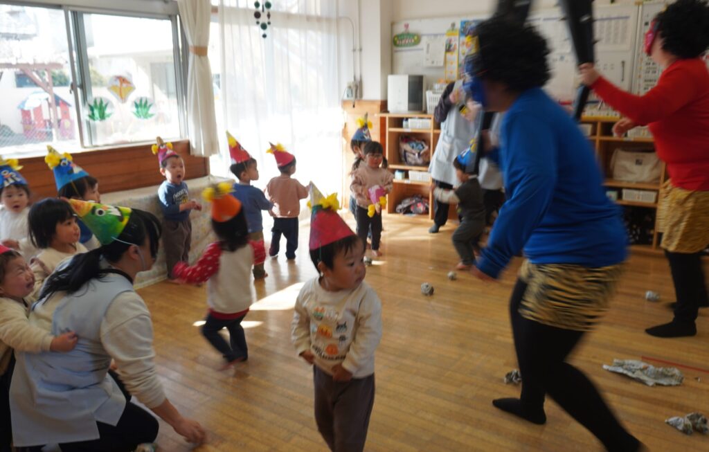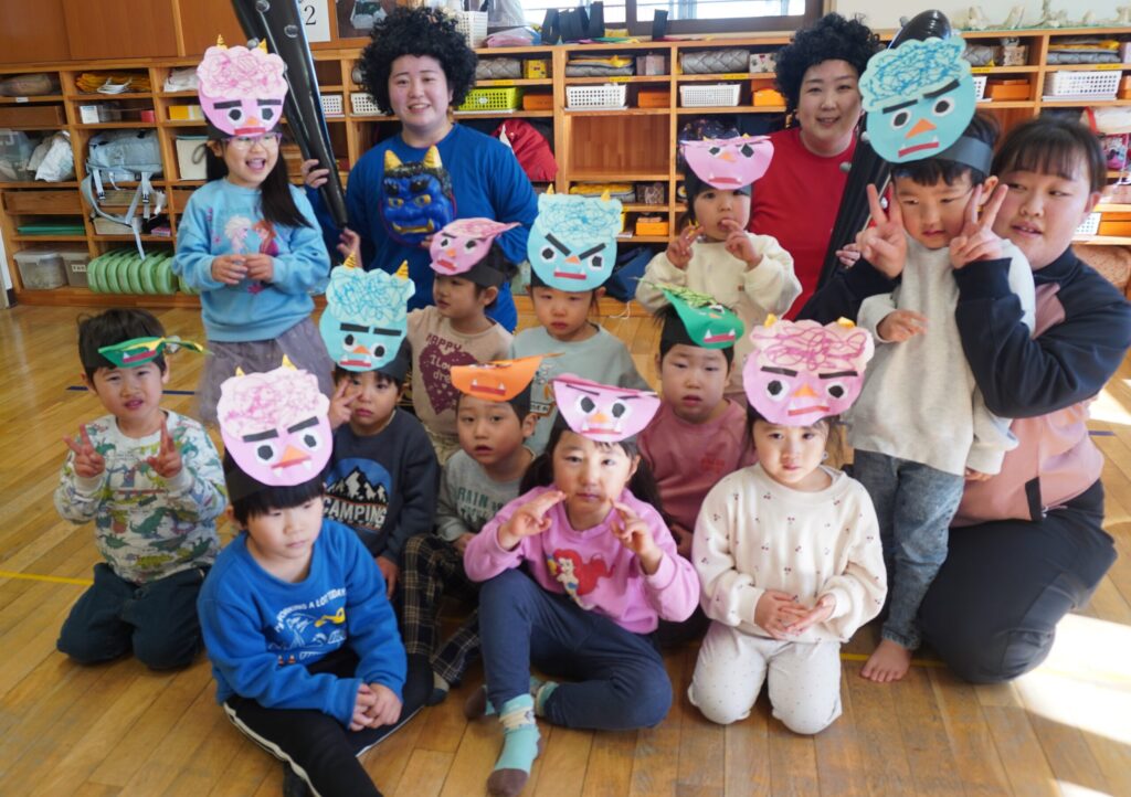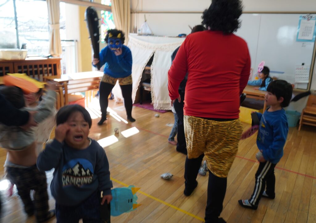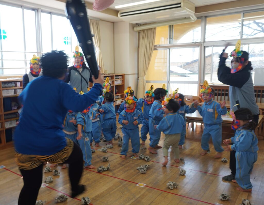 ひよこ組でははじめて見る鬼にびっくりして、泣いちゃう子がほとんどでしたが、最後に先生の顔を見て一安心💦