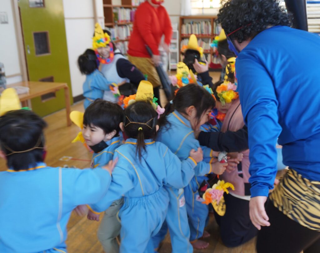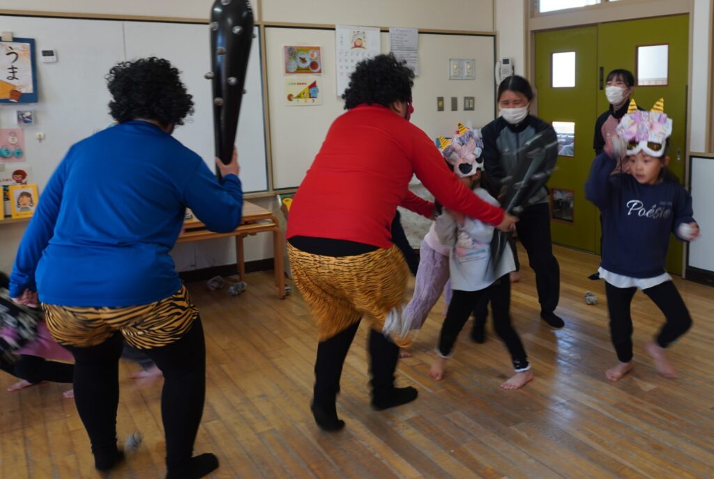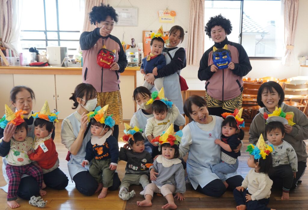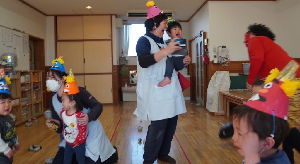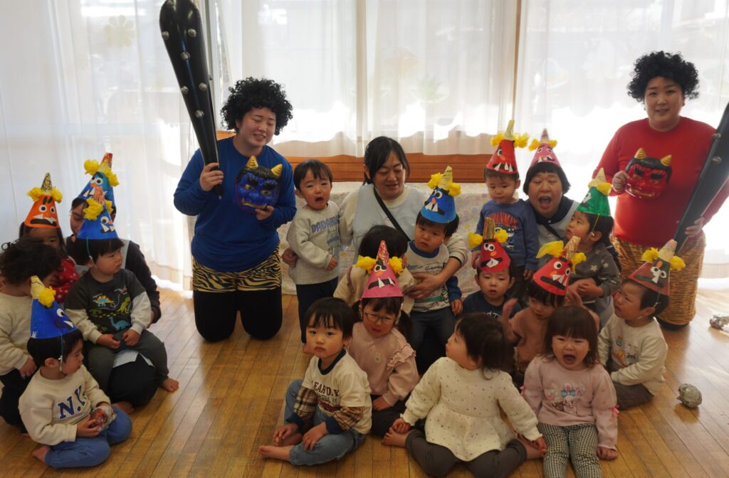 ひよこ組でははじめて見る鬼にびっくりして、泣いちゃう子がほとんどでしたが、最後に先生の顔を見て一安心💦