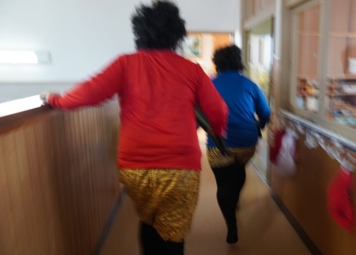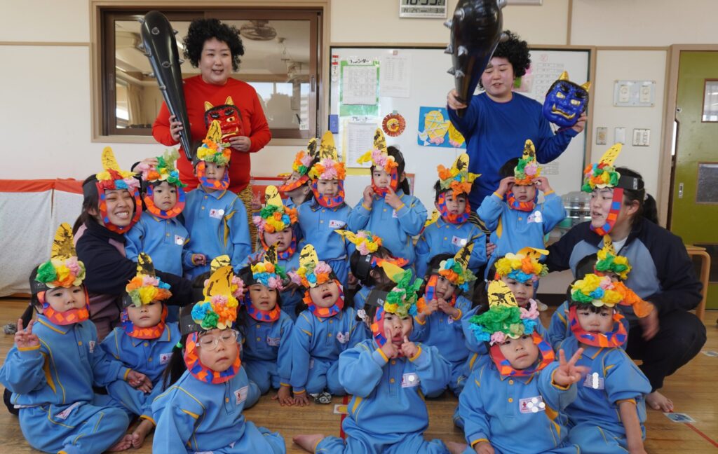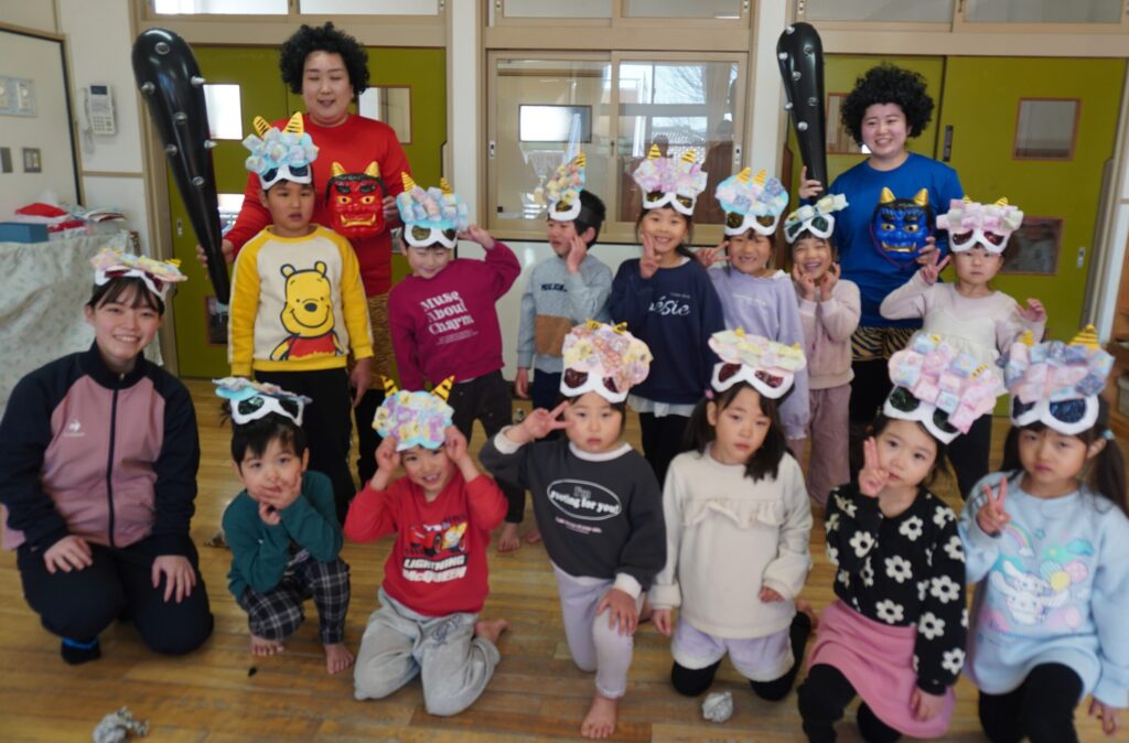 とんぼ組では、泣いてしまう子はほとんどおらず、一生懸命鬼に新聞豆を投げて退治する様子がありました!