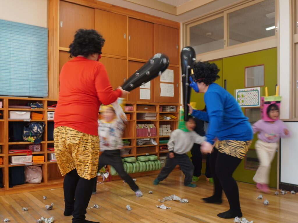 鬼に向かって新聞豆を投げることが出来たお友達が何人かいました👀‼