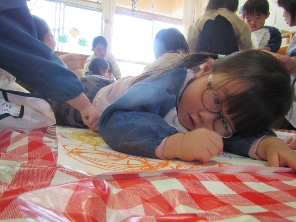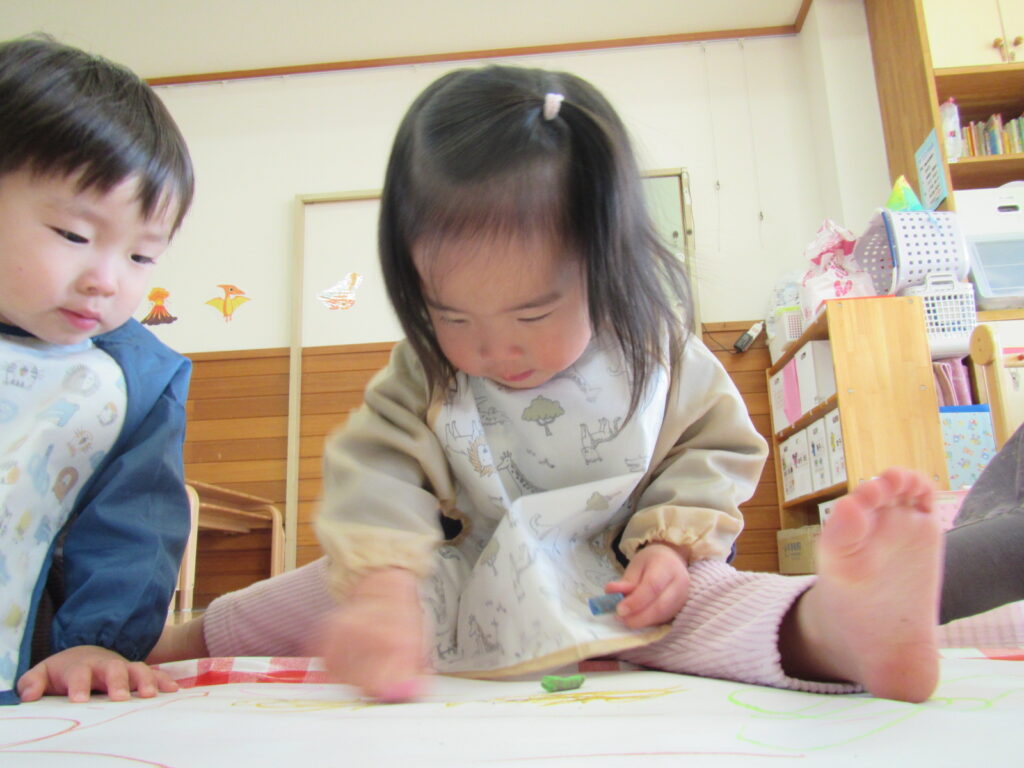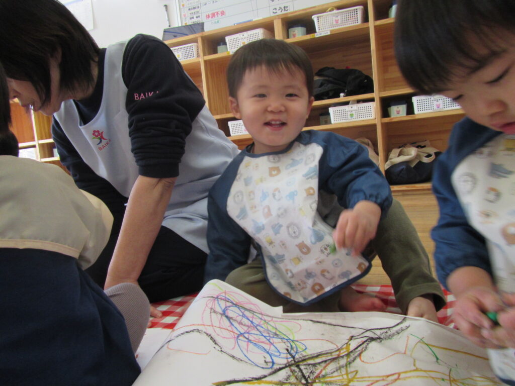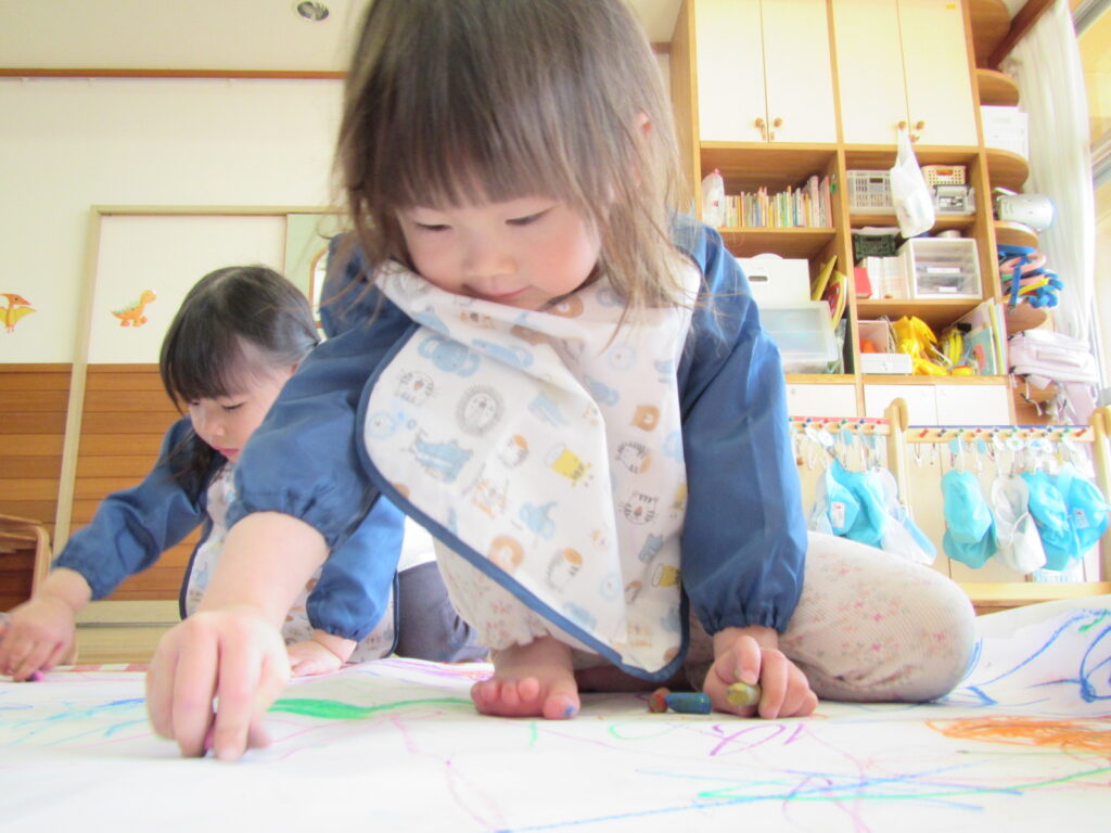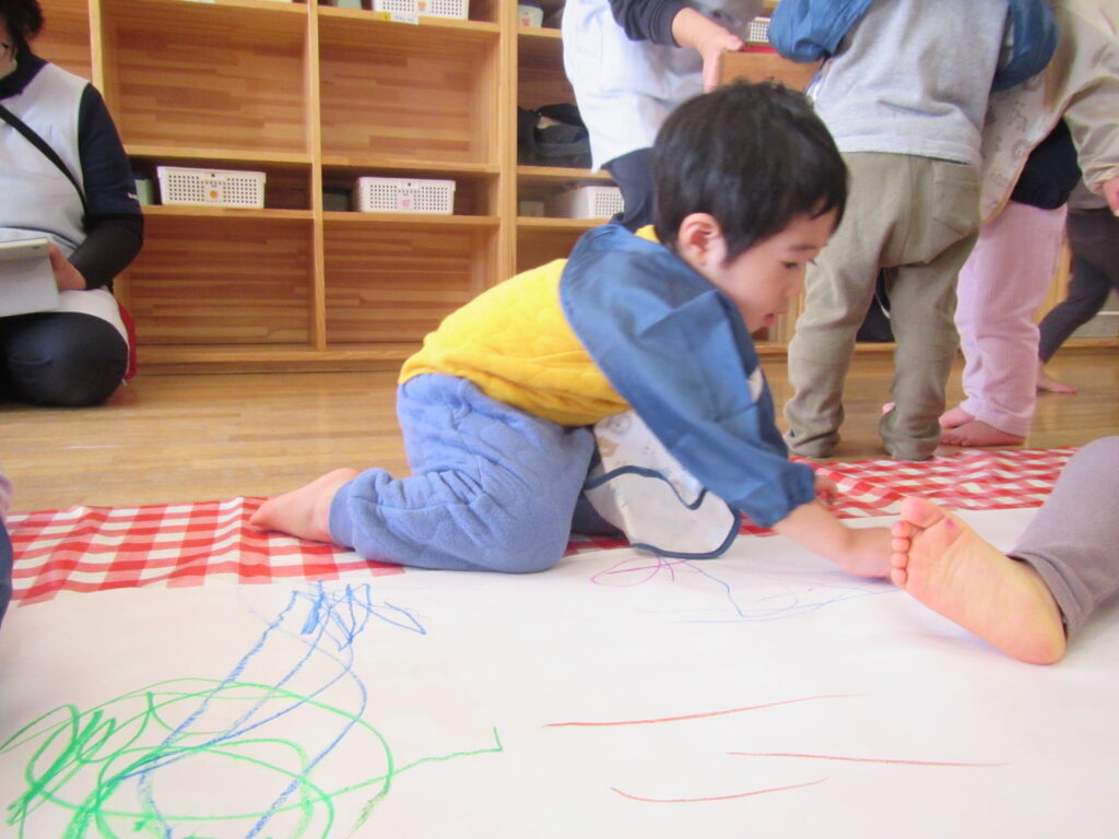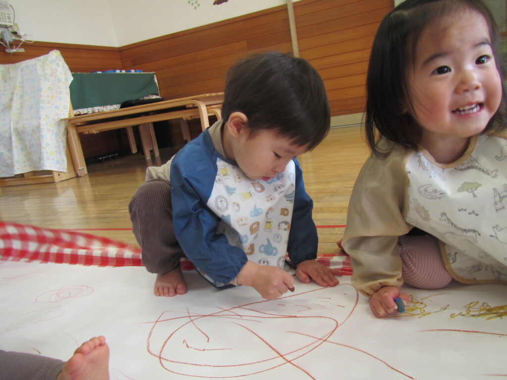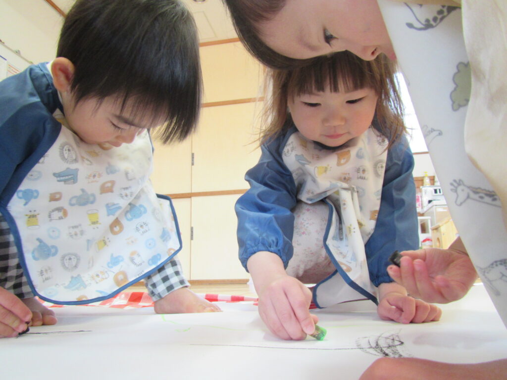 2組さんも一緒にお絵描きしました😊自分で色を選んで模造紙にたくさんお絵描きをしました🖍