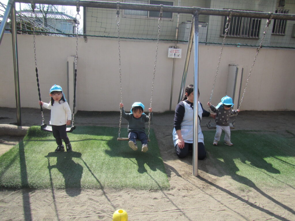 ブランコや滑り台など、たくさん身体を動かして遊んでいます🏃♂️➡️他のクラスのお友だちとも遊びました✌