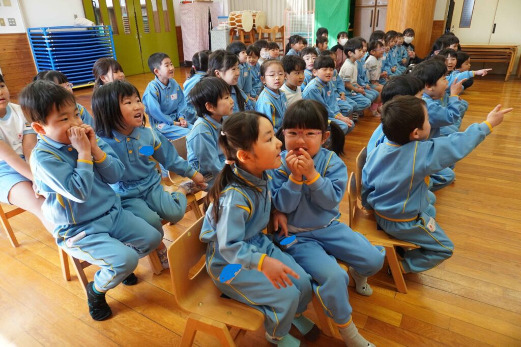 代表2名に頑張れの気持ちを込めて拍手を送る子ども達、応援の力もあり大きい声でたすけを呼ぶことができました🎉