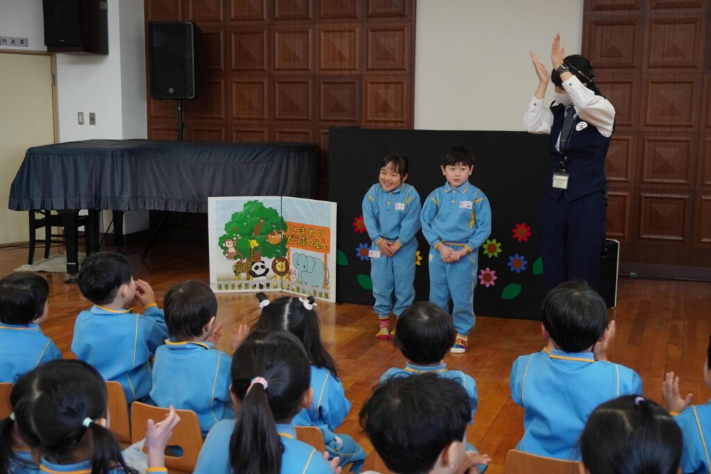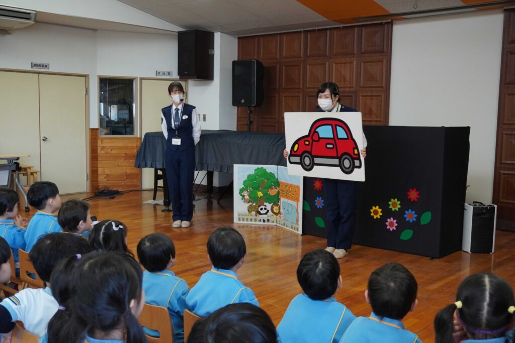 人形劇のあとには助けを呼ぶミッションをとんぼ組さんが行いました😎知らない人に連れて行かれそうになったときに大きな声で「たすけてー!」と大きい声で叫ぶミッションです!!