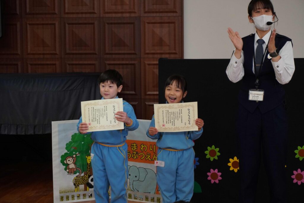 真剣にお話を聞いて4つのお約束を学ぶことのできた子ども達に表彰状をプレゼント🌸