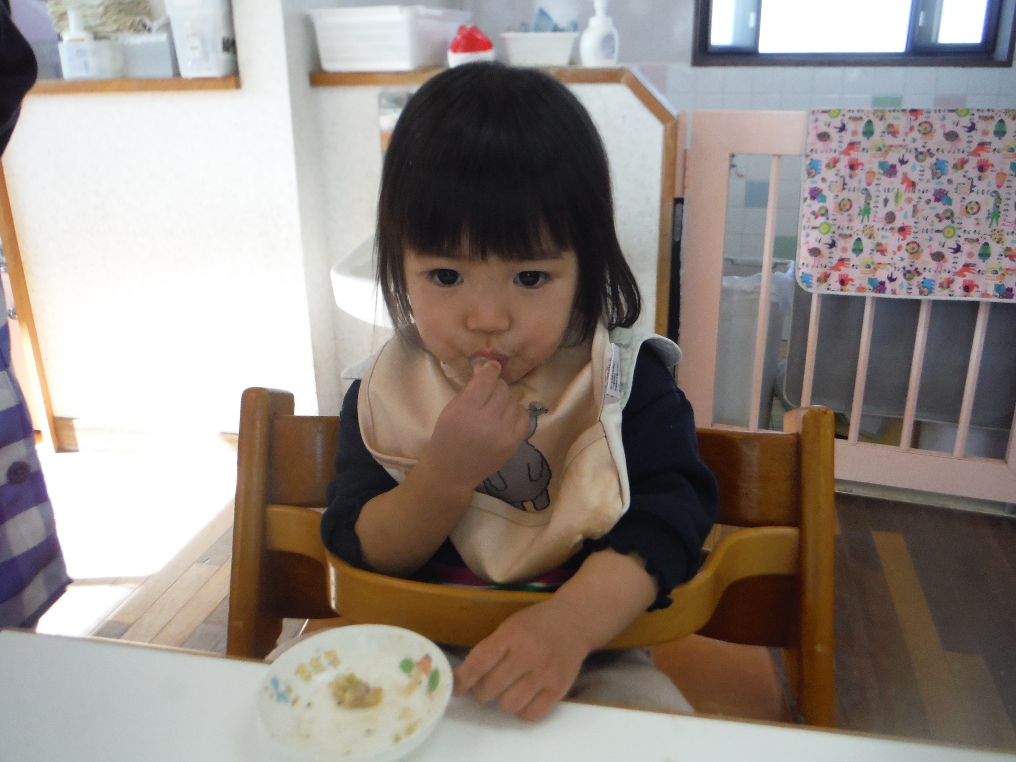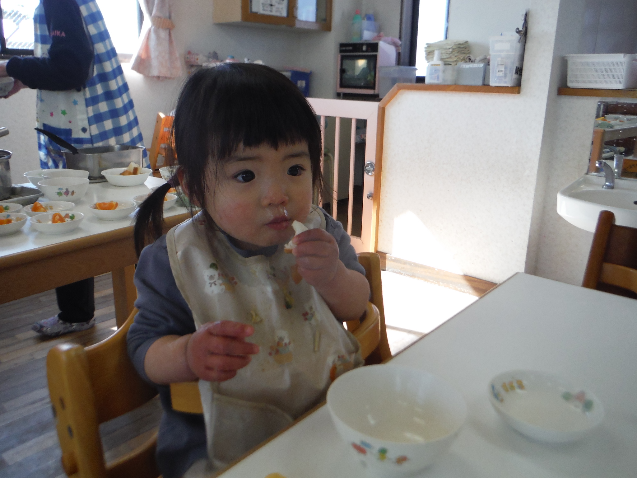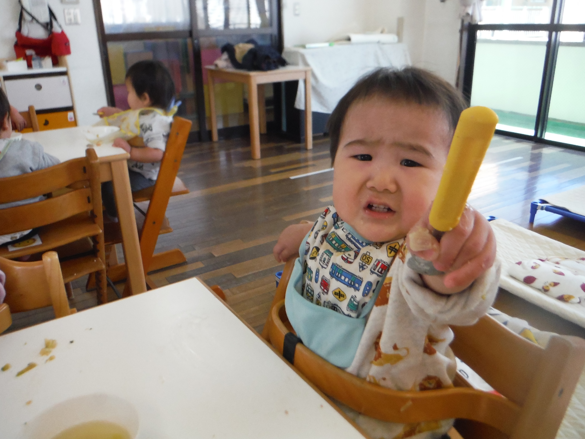 スプーン食べ、できるようになってきました。パックン上手だね!