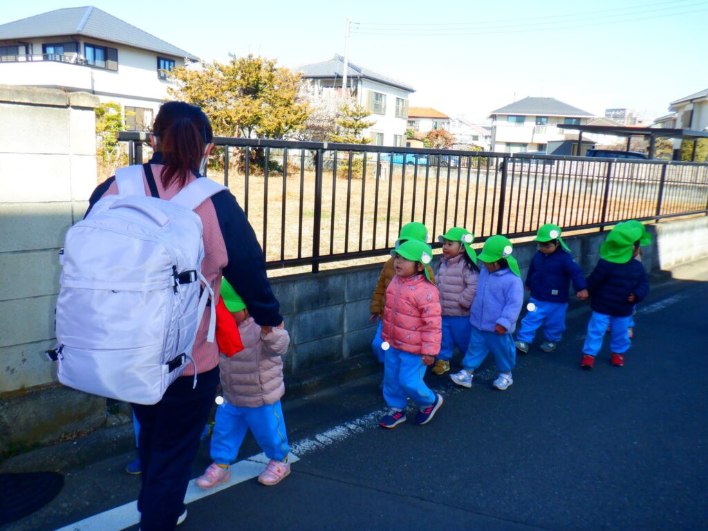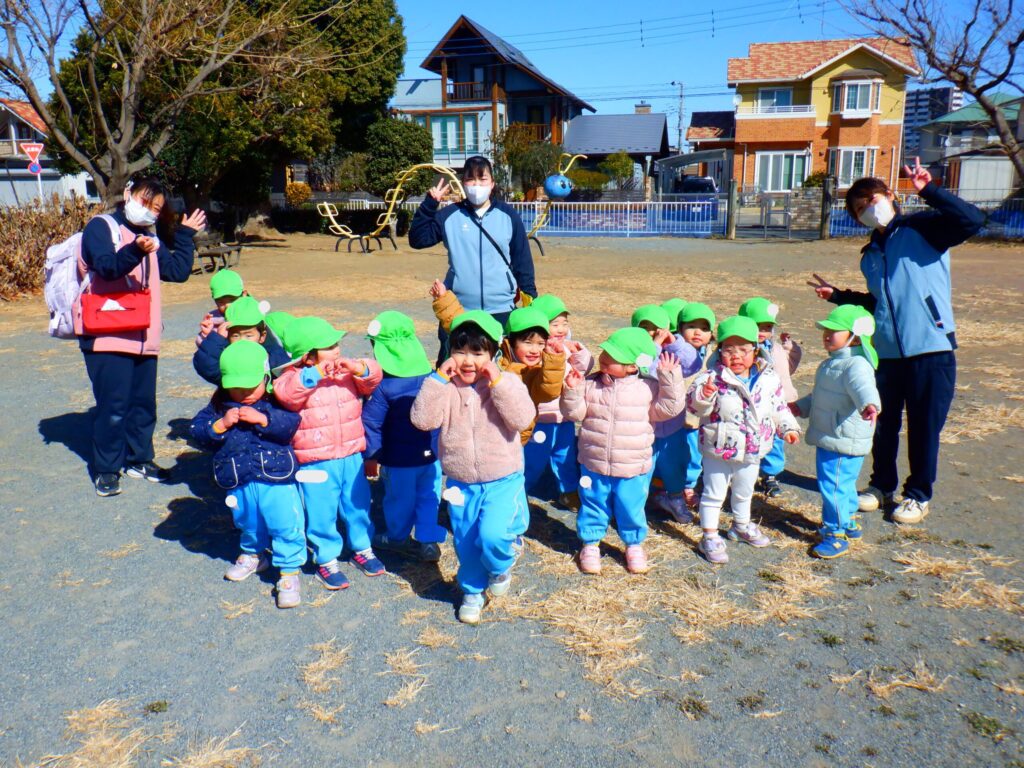 ねむの木公園に散歩に行ってきました!!久しぶりのねむの木公園に朝からワクワクしていたひまわり組さん。お友達と仲良く手を繋いで歩いて行けました。