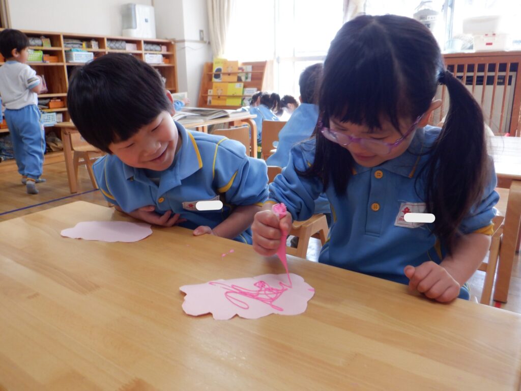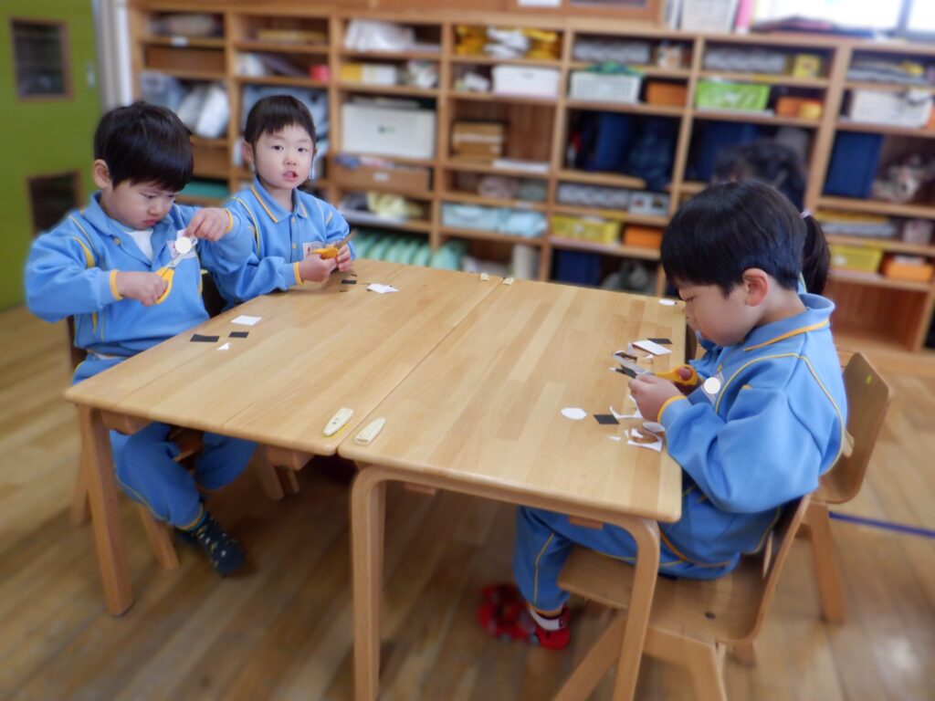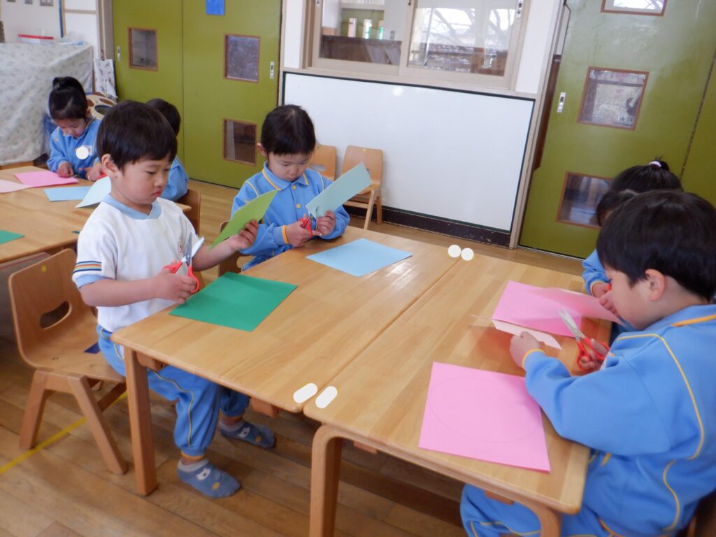 丸に挑戦したすみれ組のお友だち。真剣に頑張っていました❗