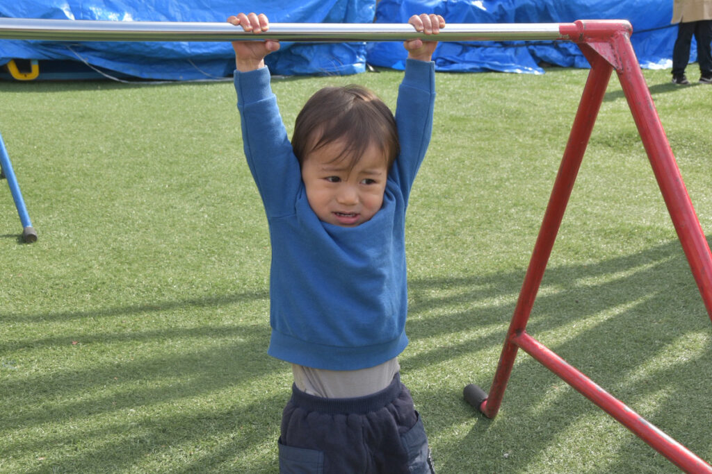 鉄棒でぶら下がりや大きい滑り台に挑戦!