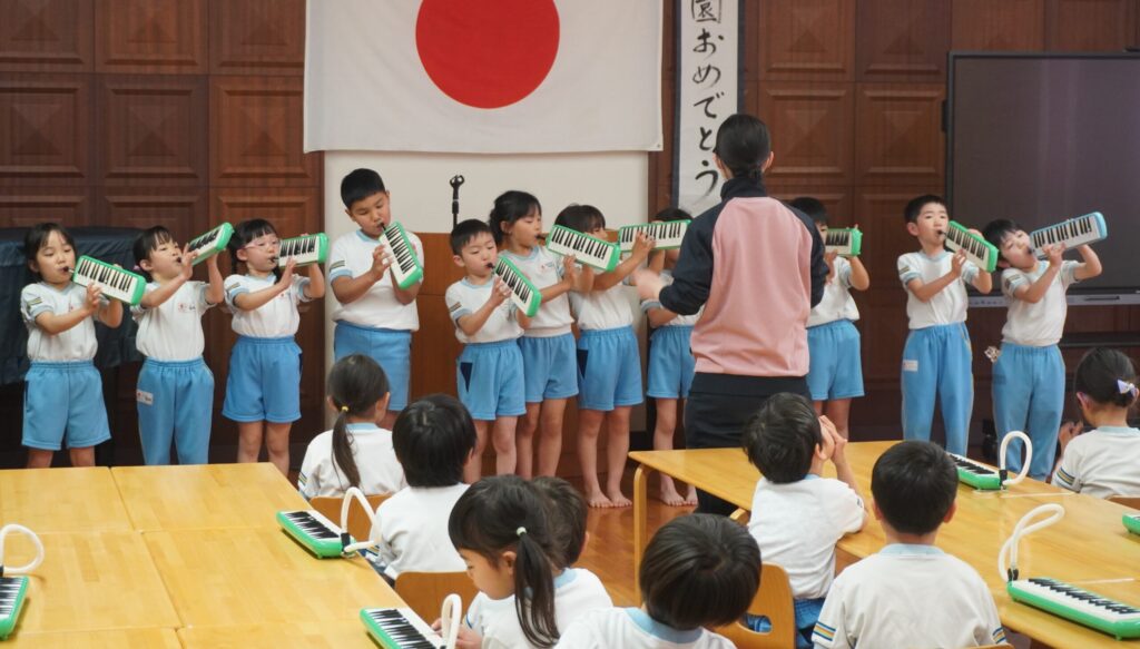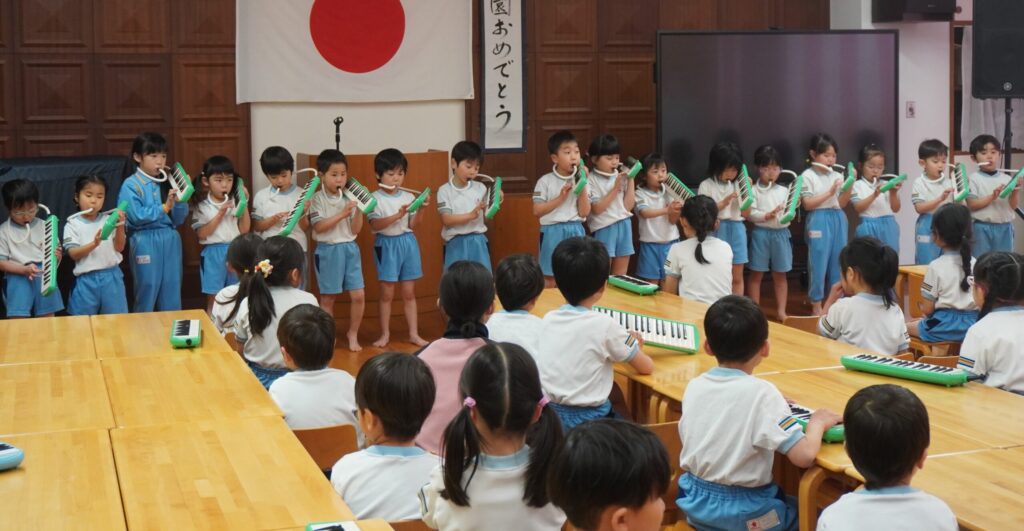 異年齢で分かれてお部屋で遊んで、つばめ組ととんぼ組のお友達がピアニカを演奏してくれました♪