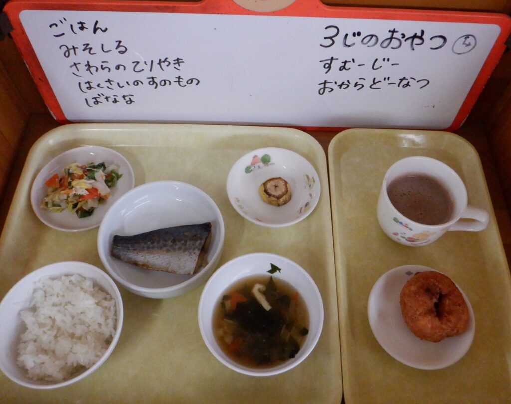 ・ごはん ・みそしる ・さわらの照り焼き ・白菜の酢の物 ・バナナ