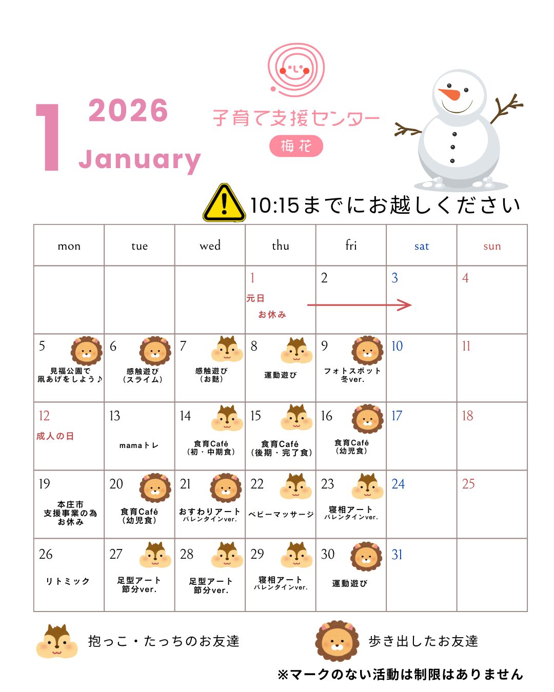A. お子さまが未就園児の場合に限って、一緒に遊びに来ていただけます。